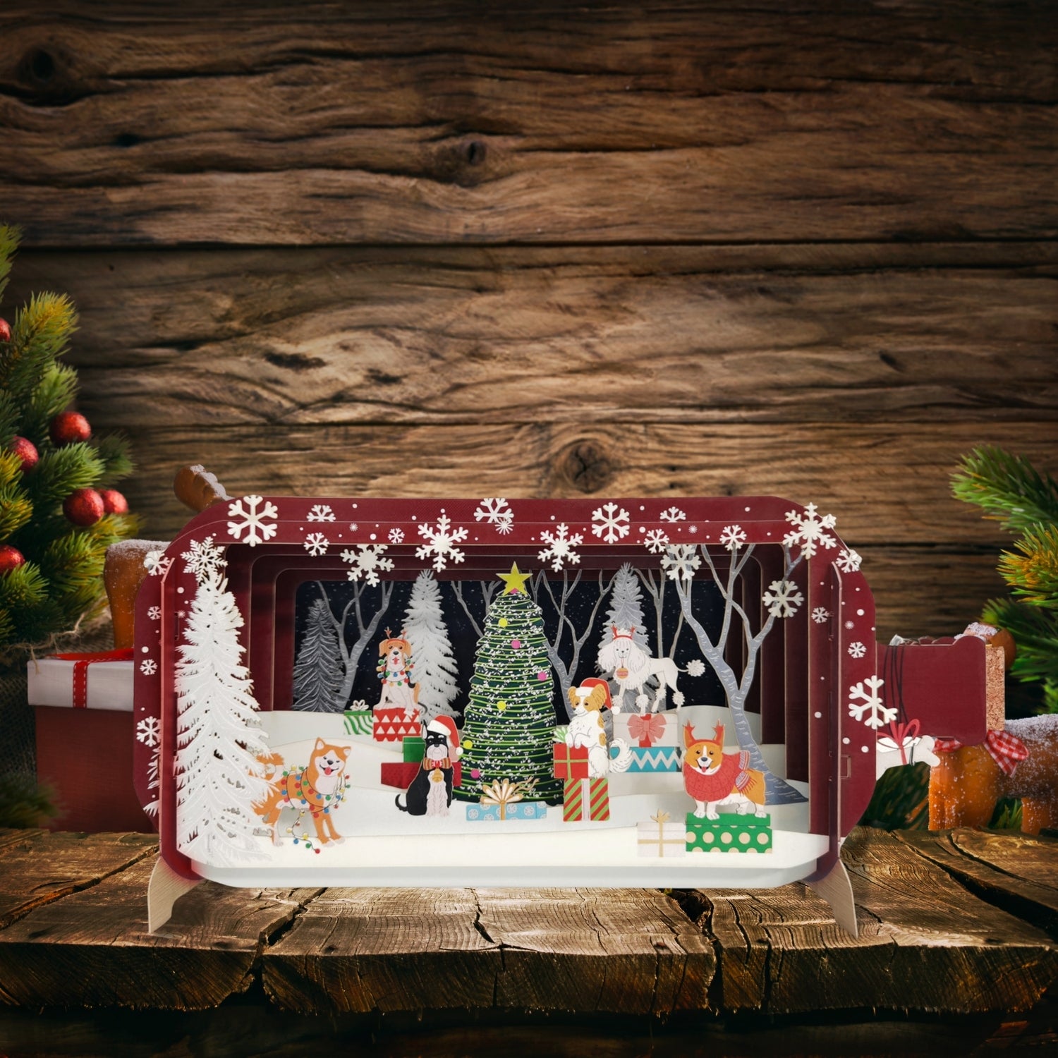 Looking for unique Christmas card ideas? Capture the magic of the season with a heartwarming surprise— a pop-up Christmas card featuring snowy scenes, playful furry friends, and festive touches. Spread the joy and warmth of Christmas with someone special.