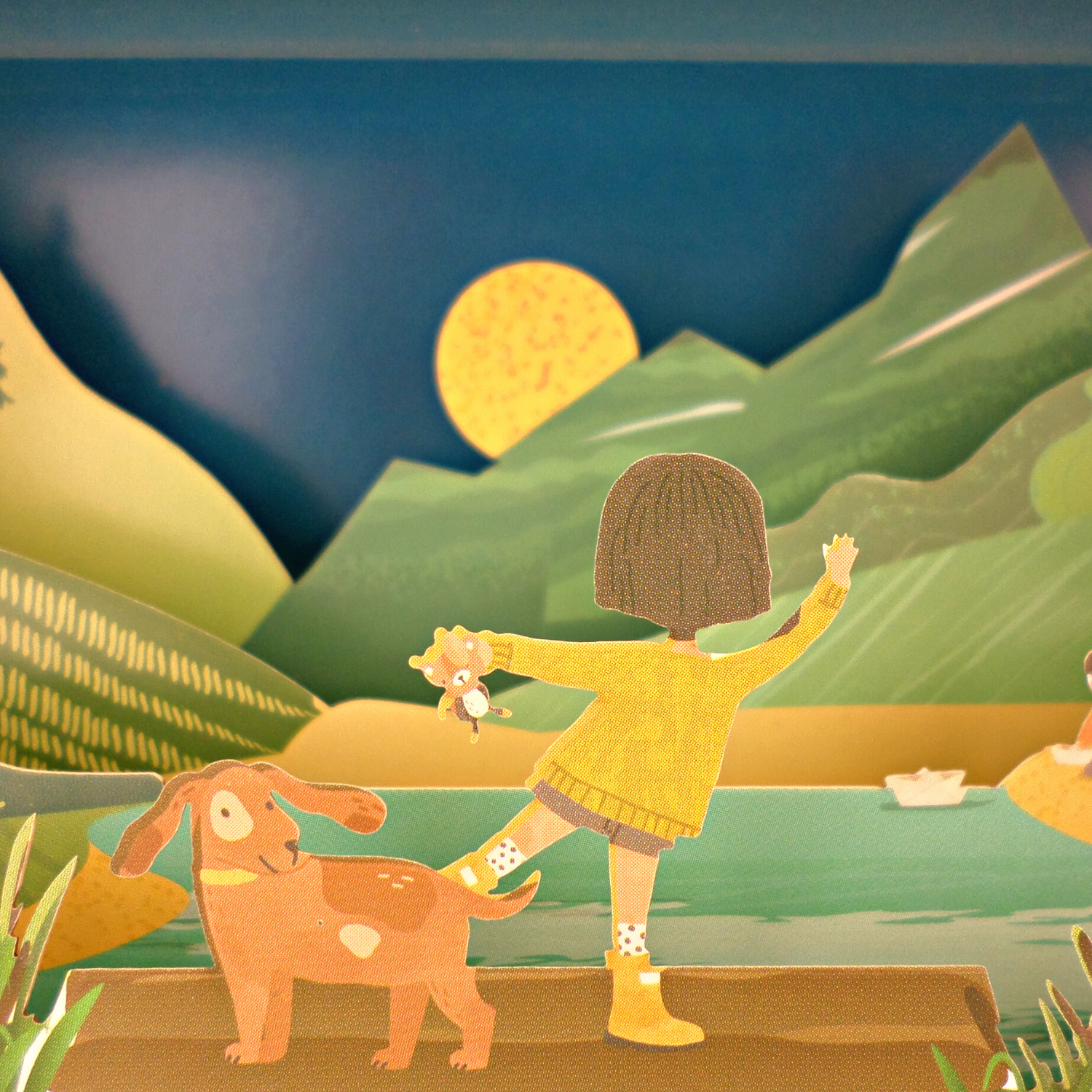 Looking for birthday card ideas for children? Encourage them to have fun in the sun on their special day with this fantastic adventure themed Pop Up card, featuring children playing with paper boats