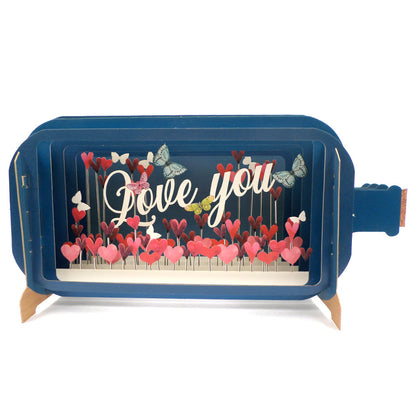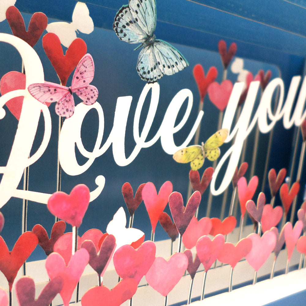 Wondering what to say on Valentine's Day? Let this stunning 3D card do the talking and say the three words we should all say more often, 'I love you'.