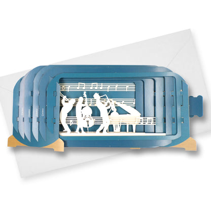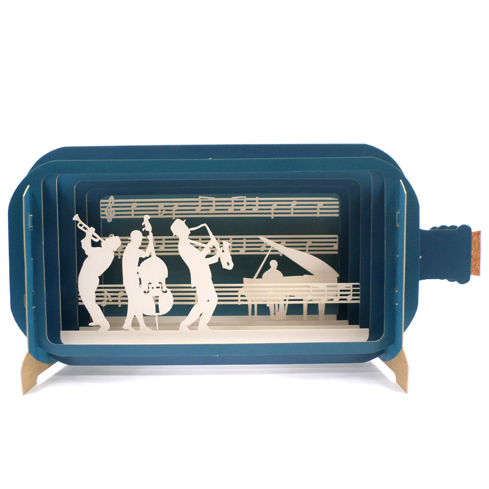 Details: An innovative laser cut pop up greeting card perfect for someone special. The card is constructed with multiple layers of card in a flat design that transforms to a freestanding 3D Pop up bottle shaped card, it is designed by Alljoy Design and comes complete with an envelope.