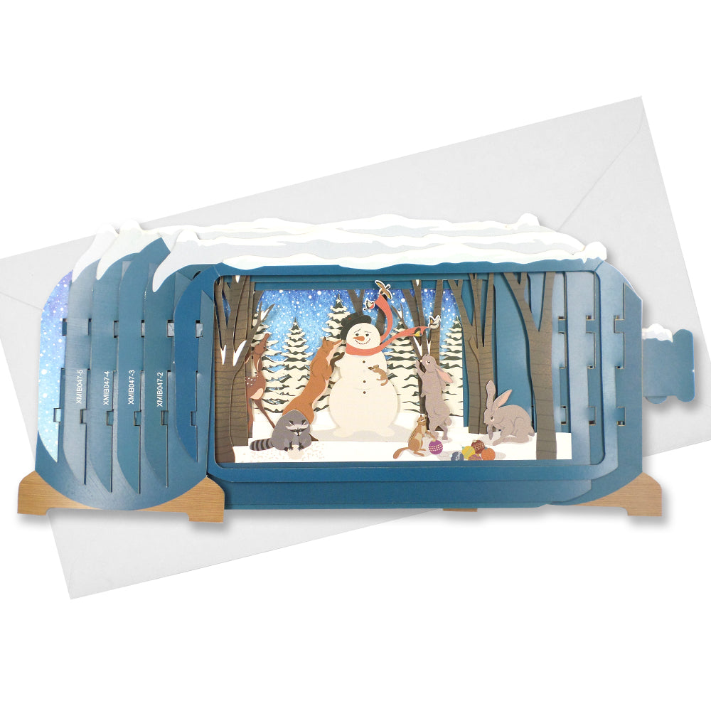 Details: An innovative laser cut festive pop up greeting card perfect for someone special at Christmas. The card is constructed with multiple layers of card in a flat design that transforms to a freestanding 3D Pop up bottle shaped card, it is designed By Alljoy Cards Design and comes complete with an envelope.