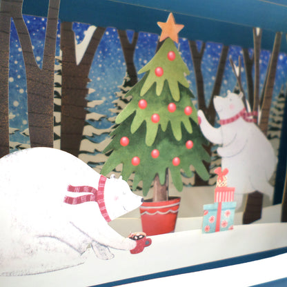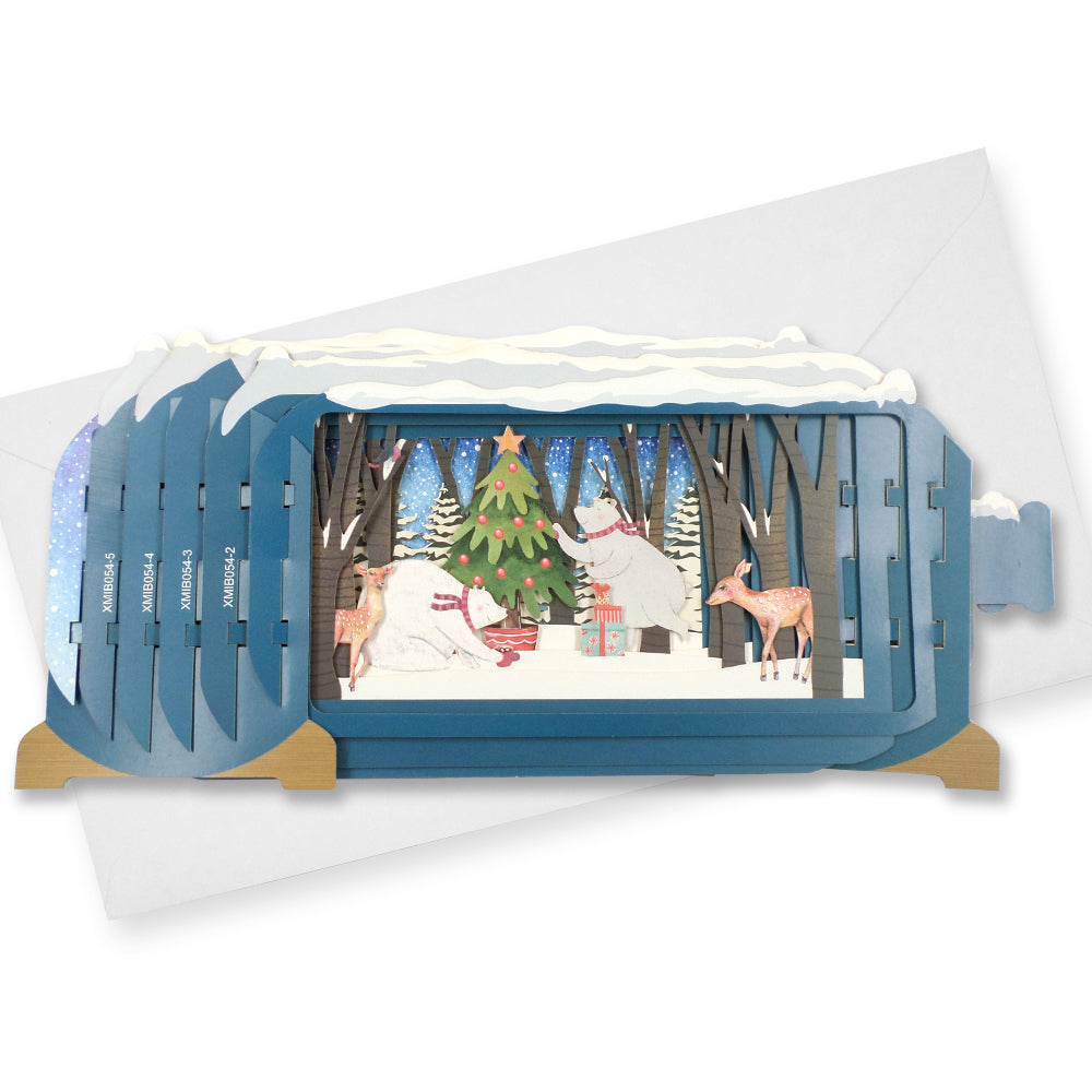Details: An innovative laser cut festive pop up greeting card perfect for someone special at Christmas. The card is constructed with multiple layers of card in a flat design that transforms to a freestanding 3D Pop up bottle shaped card, it is designed By Alljoy Cards Design and comes complete with an envelope.