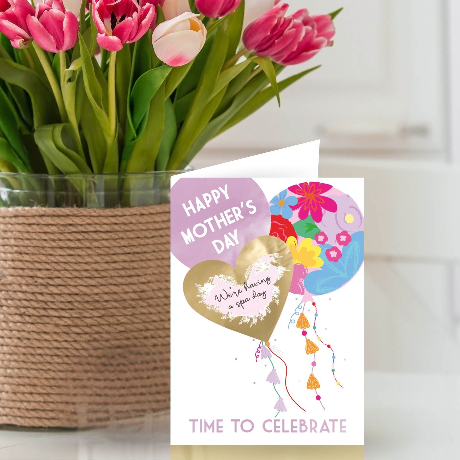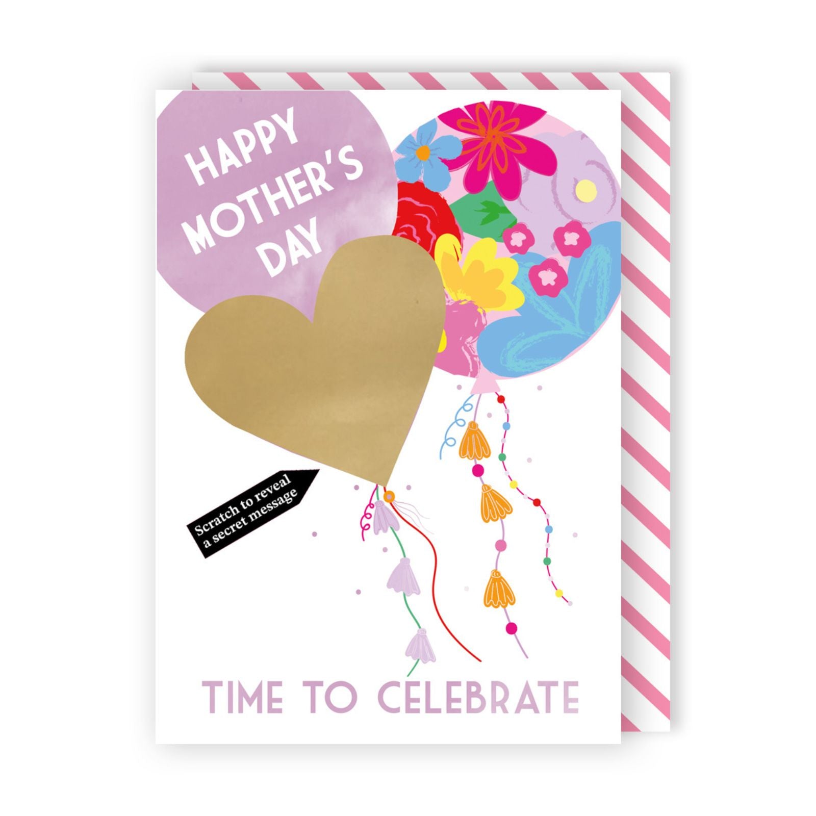 Looking for Mother's Day greeting card ideas for her? This unique card combines art and surprise, featuring beautiful pink and floral balloons. The heart-shaped space for a personalised message, hidden under a scratch-to-reveal sticker, adds a delightful element of intrigue. It’s a heartfelt way to make someone feel cherished and create a memorable moment on Mother’s Day.