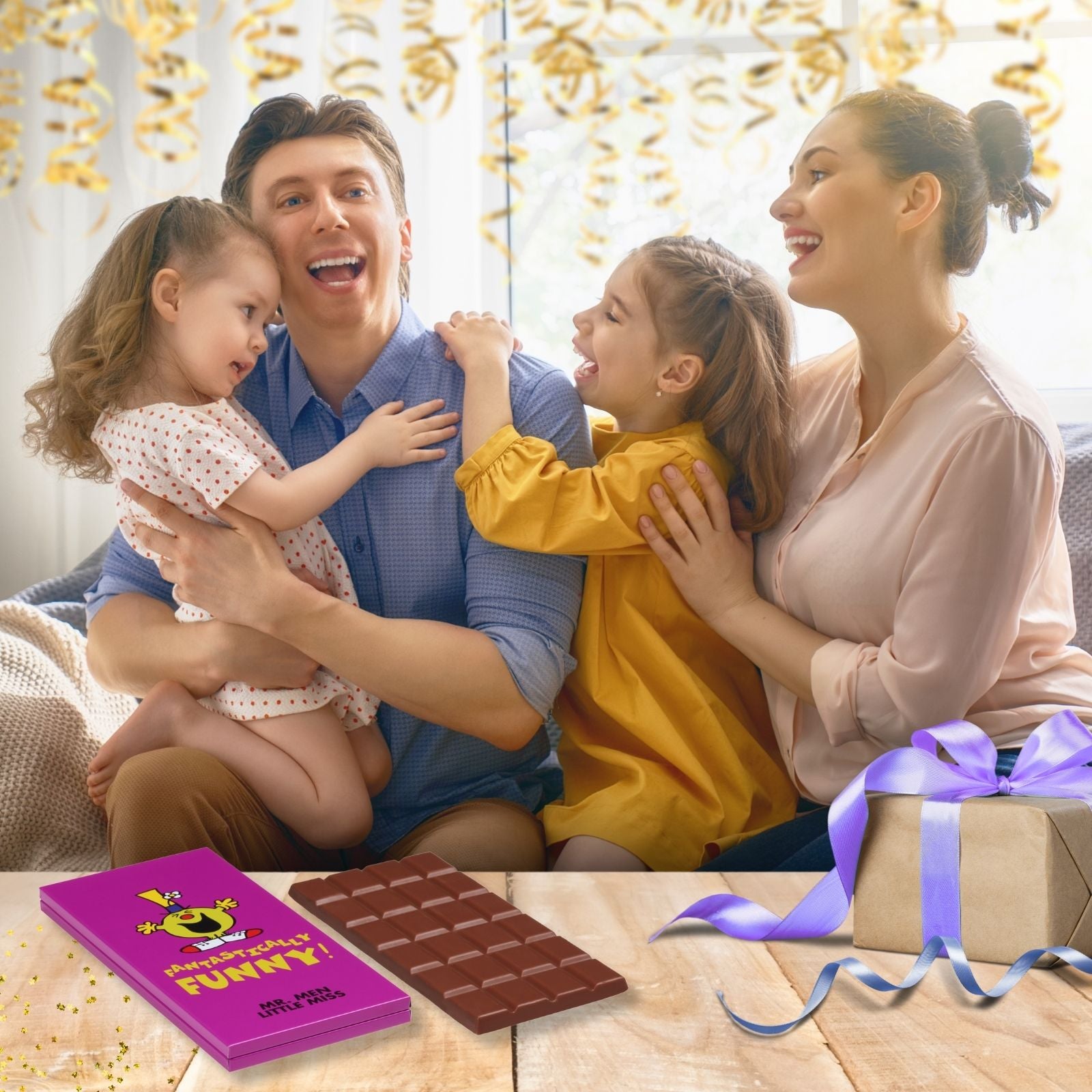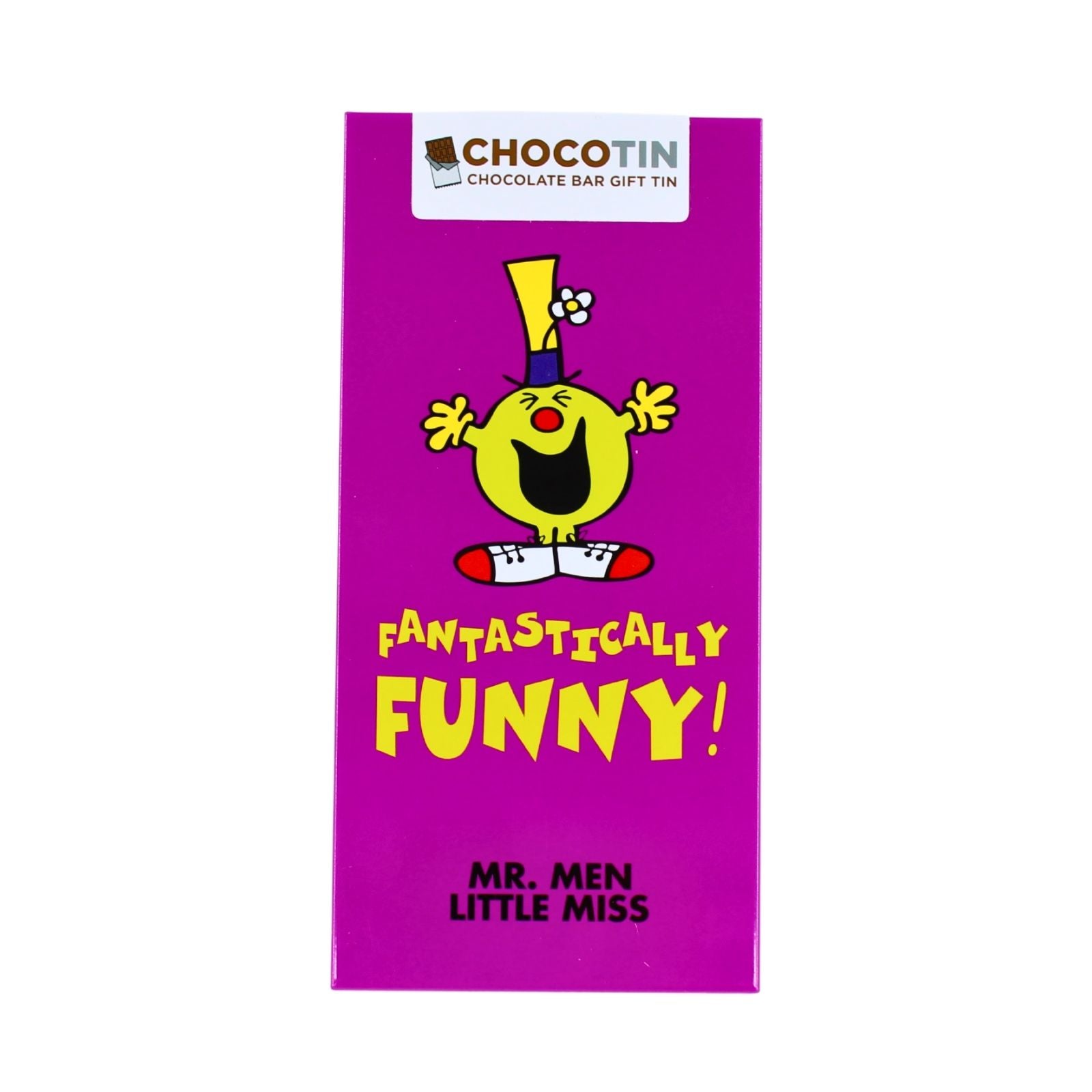 Details: This delightful collectable confection features a reusable chocolate bar tin adorned with a cheerful yellow Mr. Funny and the playful caption 'Fantastically Funny!' Inside, you'll find an 80g bar of rich milk chocolate, blending artistry and fun in a vibrant purple design, making it a perfect gift for fans of whimsical treats.