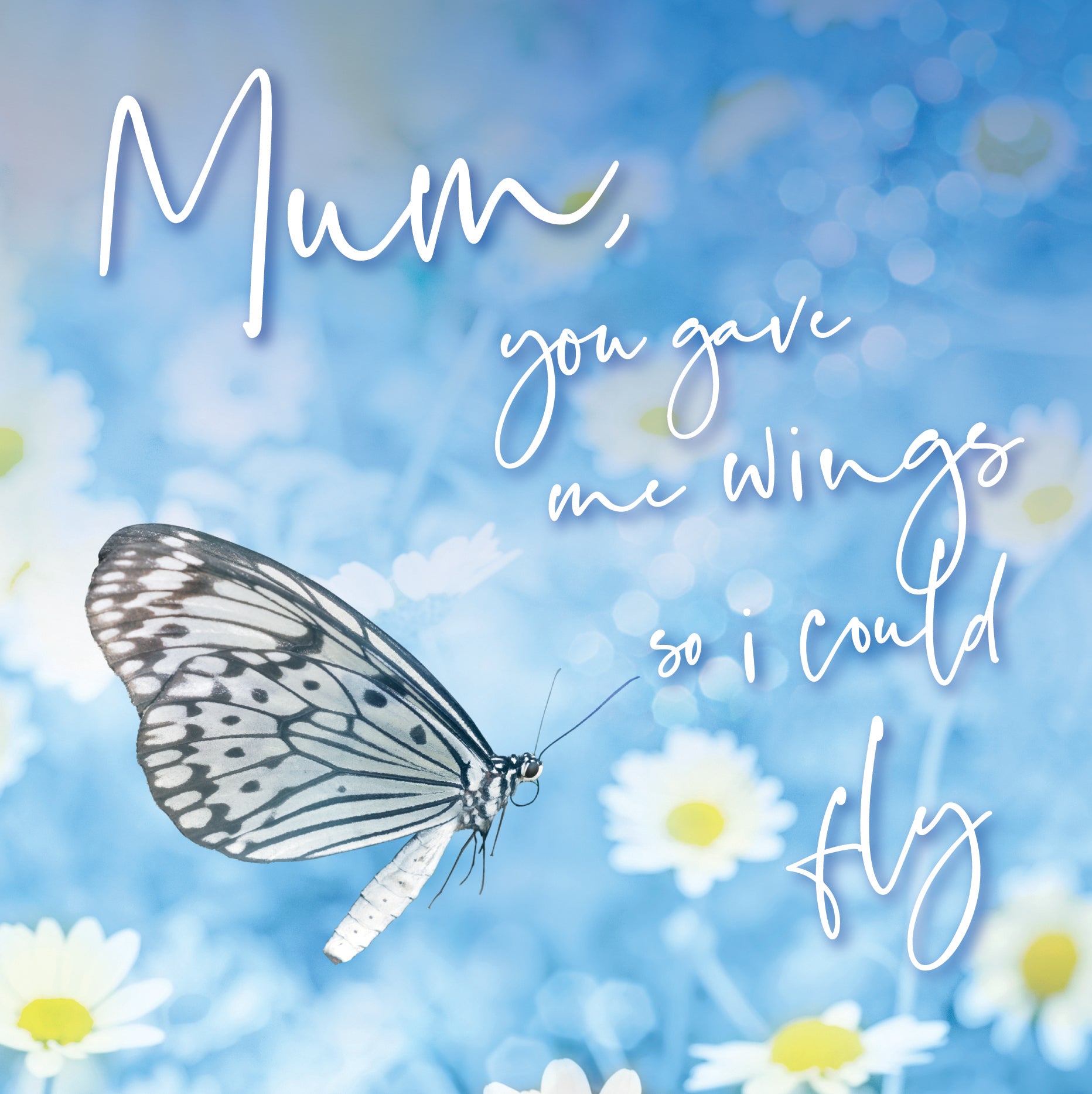 Details: A quality photographic Mother's Day greeting card perfect for mum, featuring a delicate butterfly on a blue daisy backdrop by Second Nature
