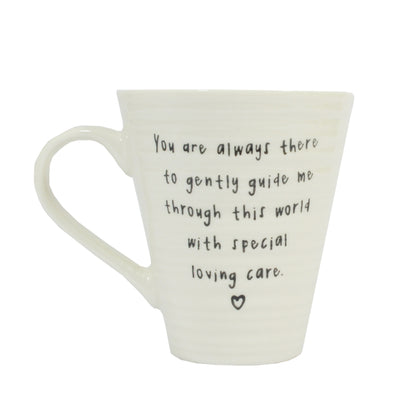 Details: A gorgeous sentimental mug with a caption on the front and rear: 'Mummy' 'You are always there to gently guide me through this world with special loving care.'