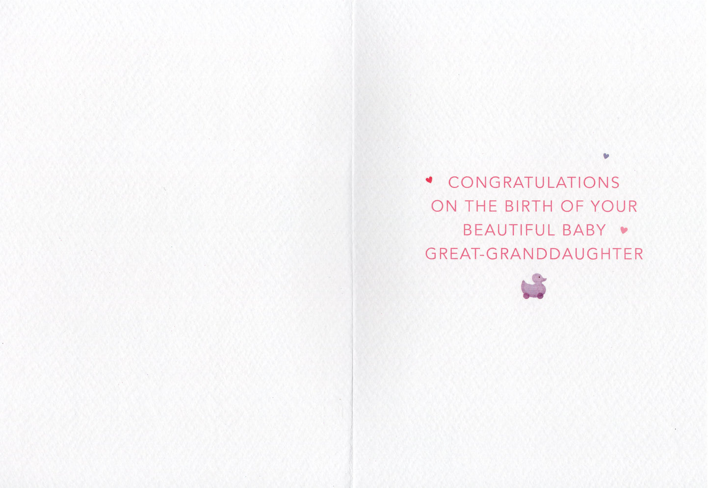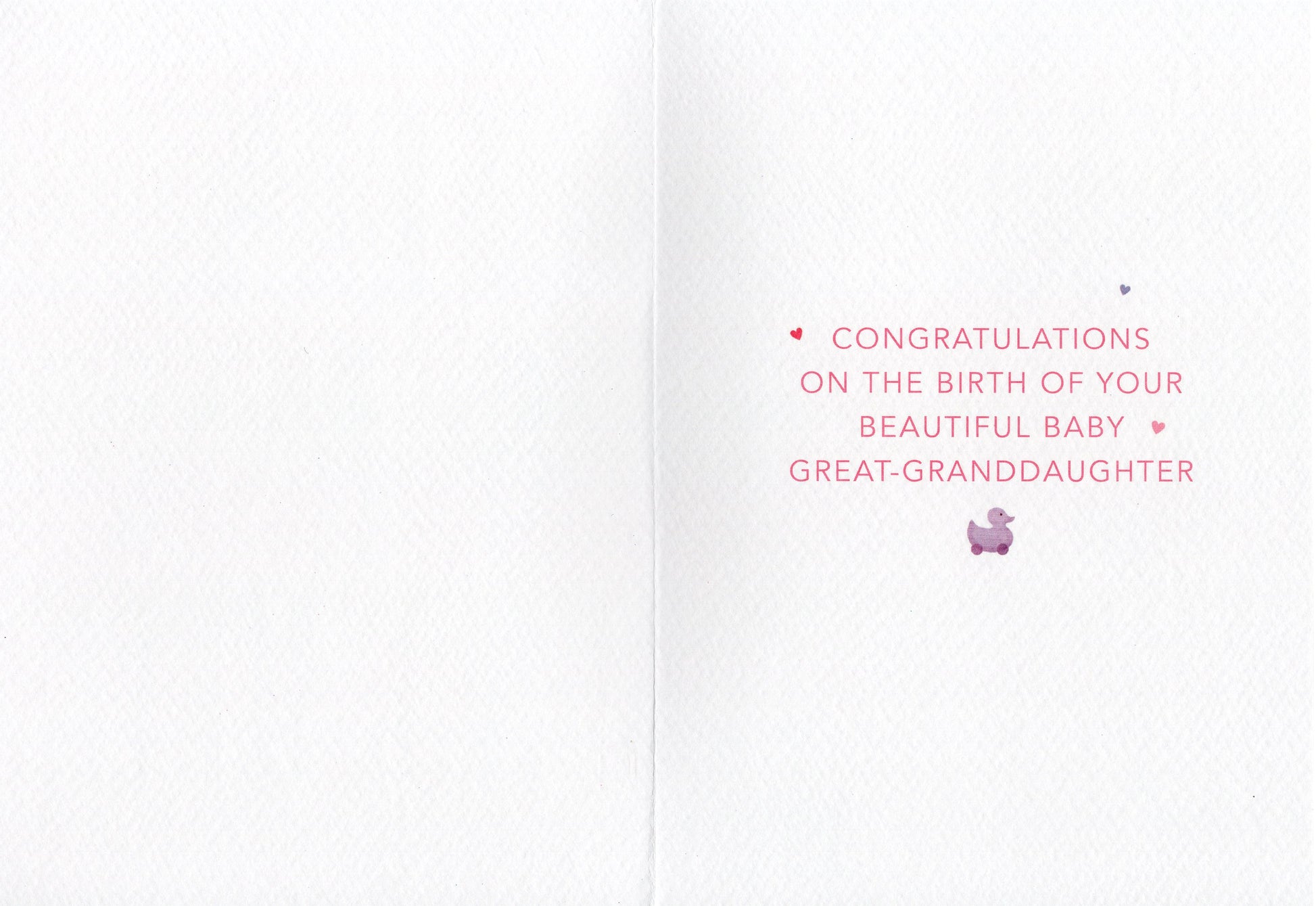 Message: CONGRATULATIONS ON THE BIRTH OF YOUR BEAUTIFUL BABY GREAT-GRANDDAUGHTER