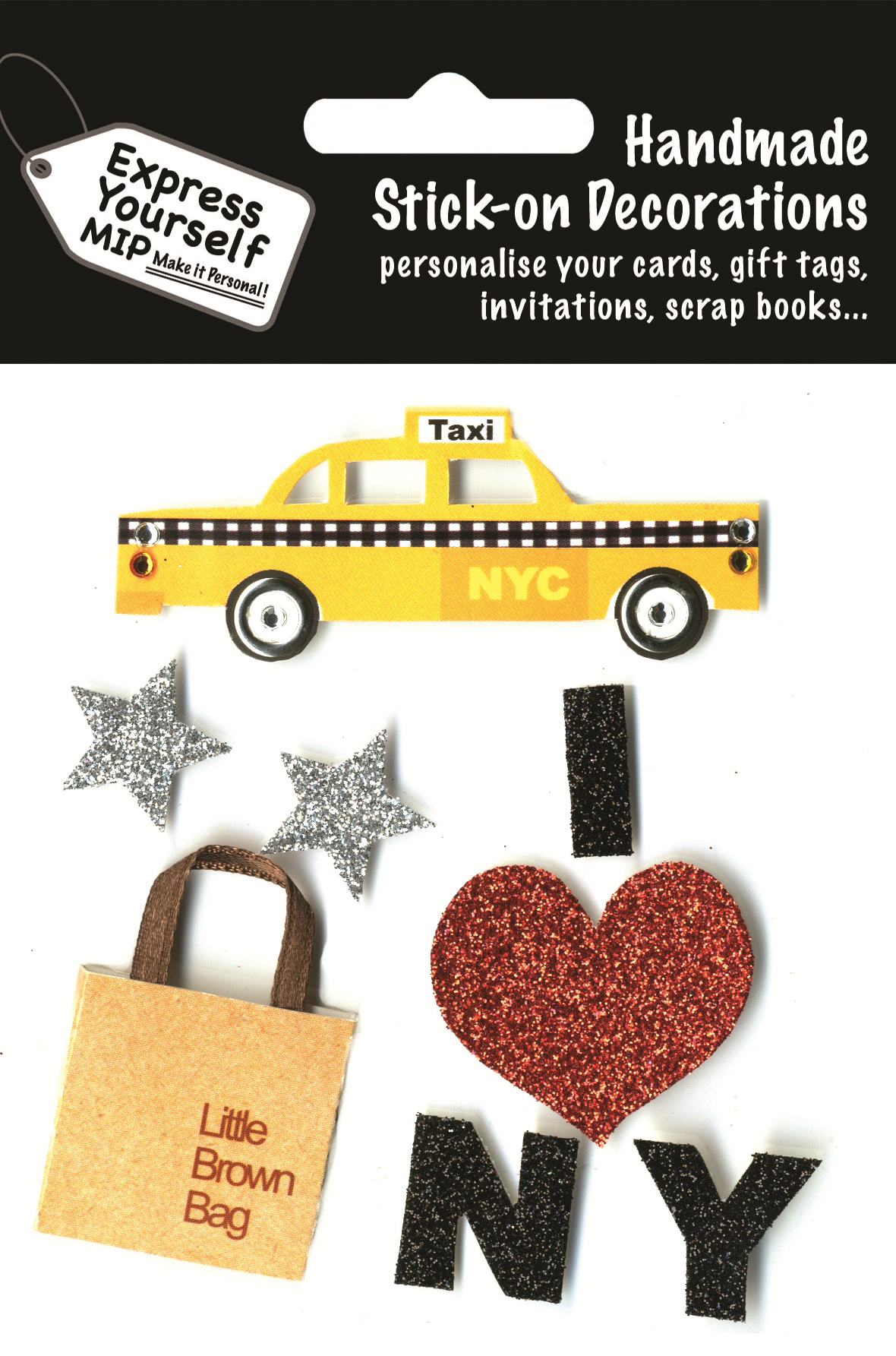 Details: A gorgeous range of glitter finished stick-on adhesive toppers from the popular Express Yourself DIY Range. Toppers are the perfect way to personalise a greeting card and may also be used for invitations, gifts, gift tags, scrap books and much more besides. They are easy to use, they simply stick on.