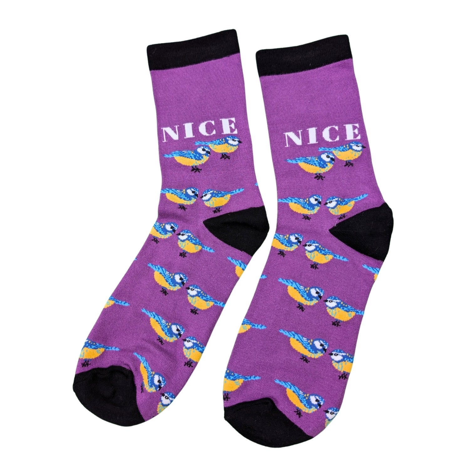 Details: This collectable sock from WPL Gifts' Sox Appeal range features cheeky and eye-catching pairs of blue tit birds. With the caption 'Nice Tits', this playful sock is bound to make a special someone feel appreciated.