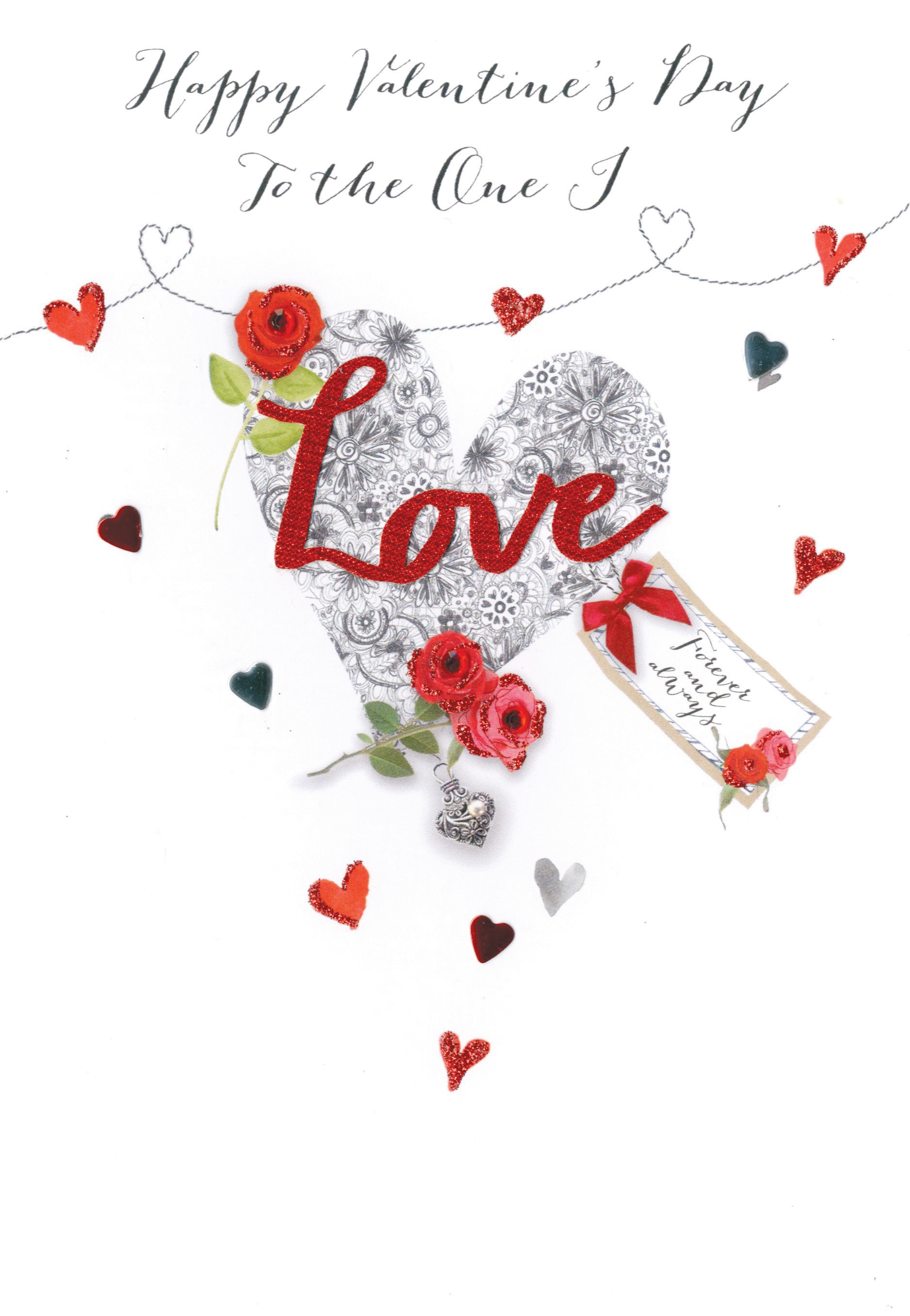Details: A beautiful glitter-finished embellished Valentine's Day greeting card from Second Nature's Joie De Vivre range for 'The One I Love'