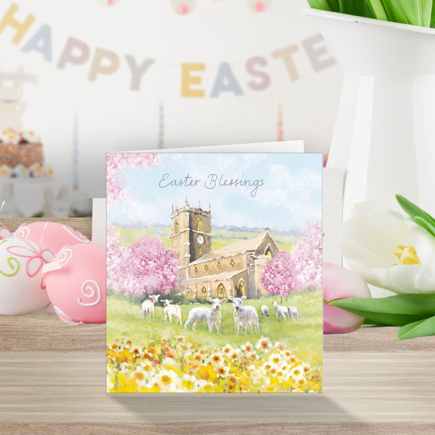 Details: Woodmansterne's eco-friendly card range features a beautiful church and wildflowers design with the caption 'Easter Blessings'. Perfect for any occasion, this card is guaranteed to bring joy, love and heartfelt emotions when received by your loved ones.
