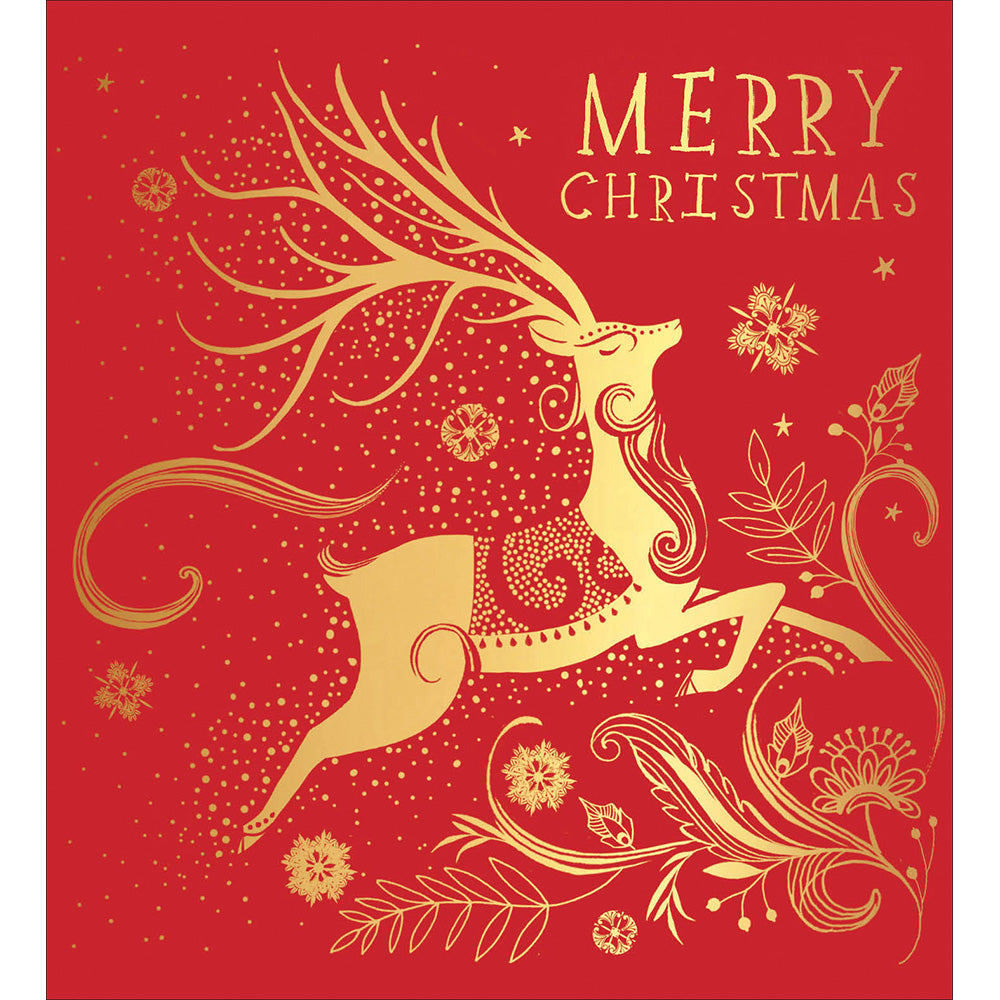 You are viewing: A pack of 5 Charity Christmas Cards featuring a gold foiled reindeer