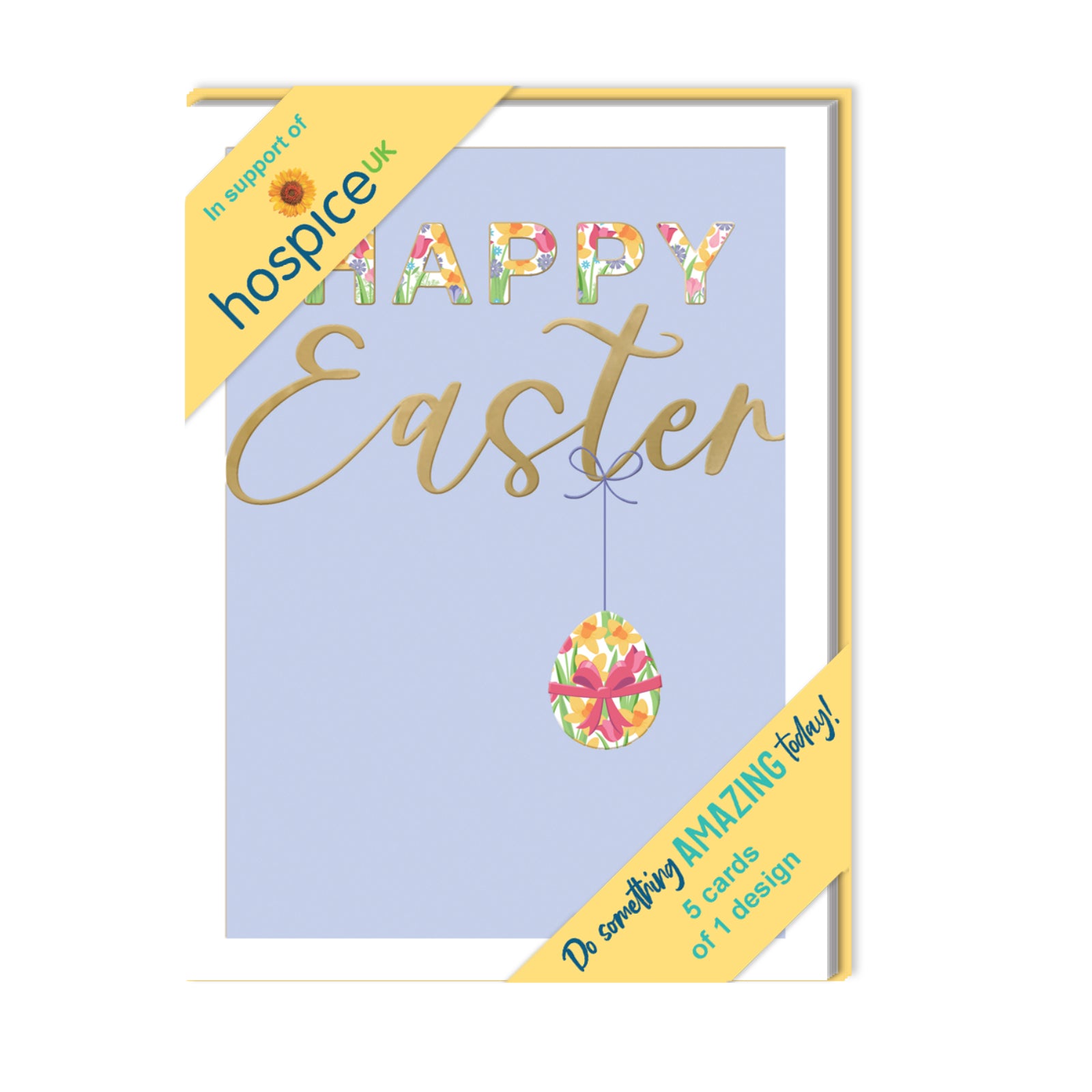 Details: This delightful pack of charitable Easter cards designed by Second Nature support the work of Hospice UK and feature a simple gold foiled design and a beautifully decorated egg with the heartfelt message 'Happy Easter'.
