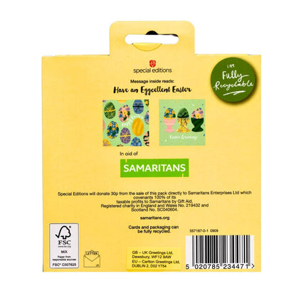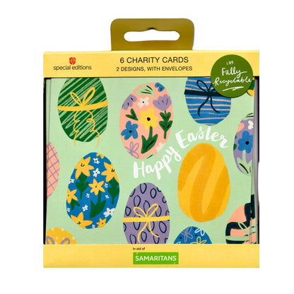 Details: This pack of 6 Easter greeting cards has been thoughtfully designed by Special Editions as part of their charity range. Each card features a beautiful Easter egg with colourful patterns and the caption 'Happy Easter'. Sending one of these cards is sure to bring joy to a special someone while also supporting a good cause.