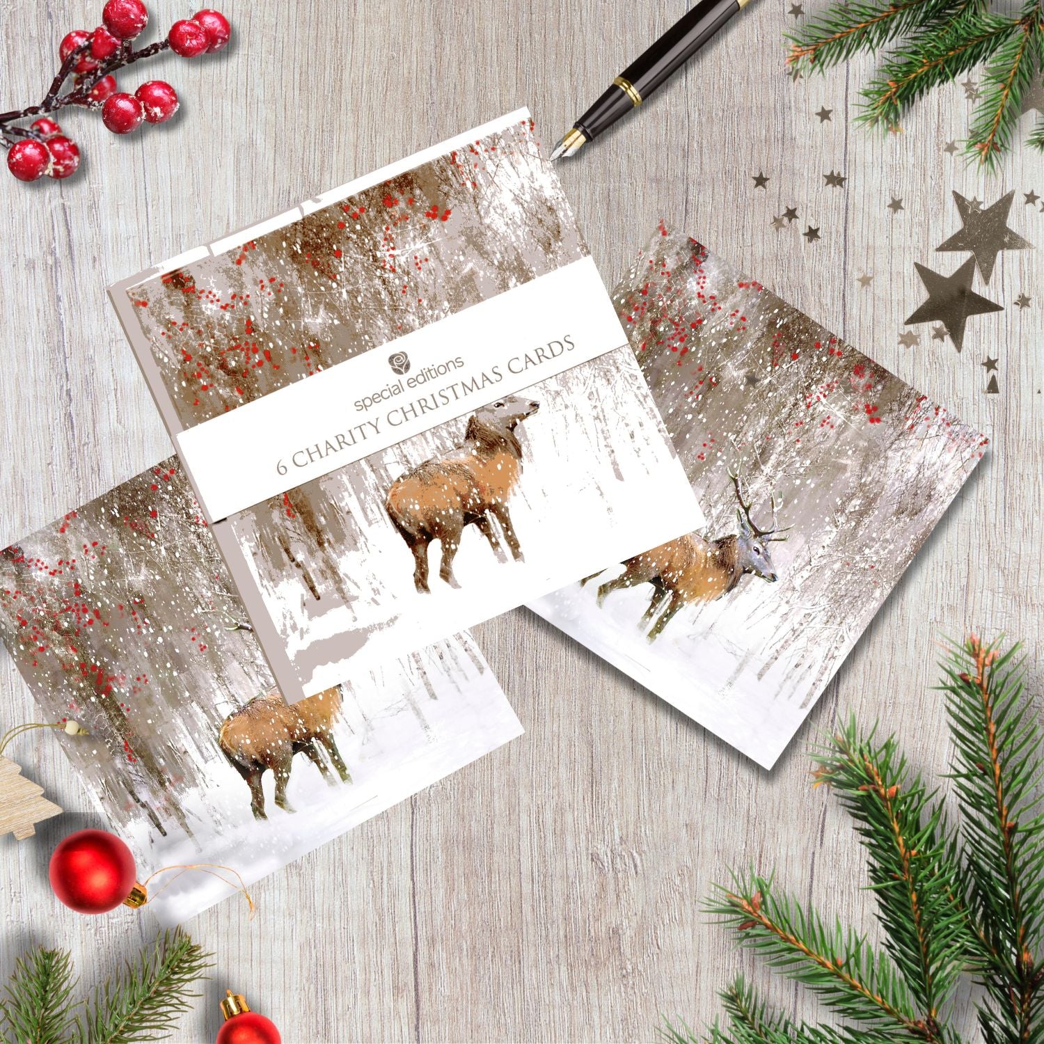 Looking for charity Christmas cards? Capture your thoughtfulness with this charitable greeting card pack featuring a magnificent woodland stag in the snow. Sending them a charity Christmas card is a heartfelt gesture that will warm their heart.