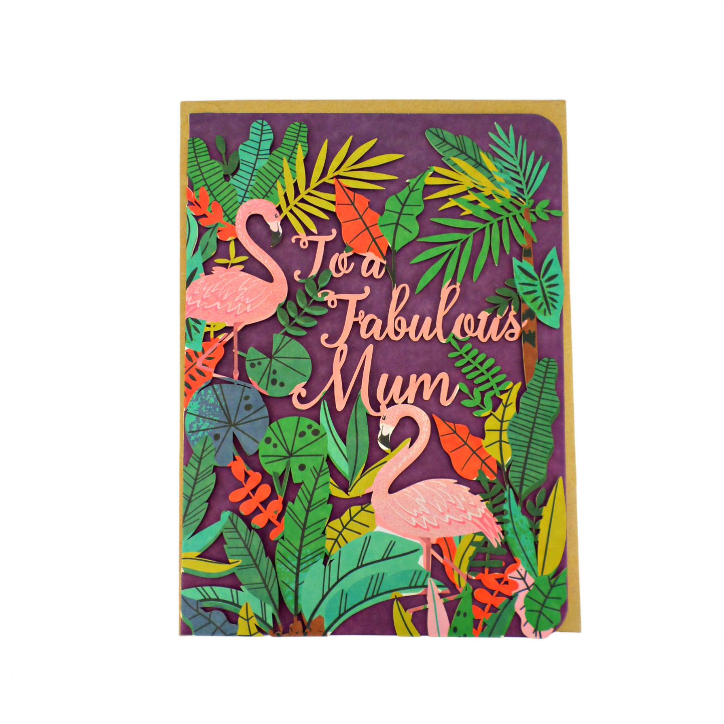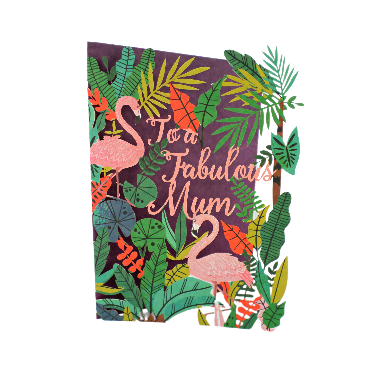 Details: An exquisite paper cut greeting card finished with delicate and intricate detail by Alljoy Design from their beautiful Paper Cut Art range, this card features cut out flamingos and flora