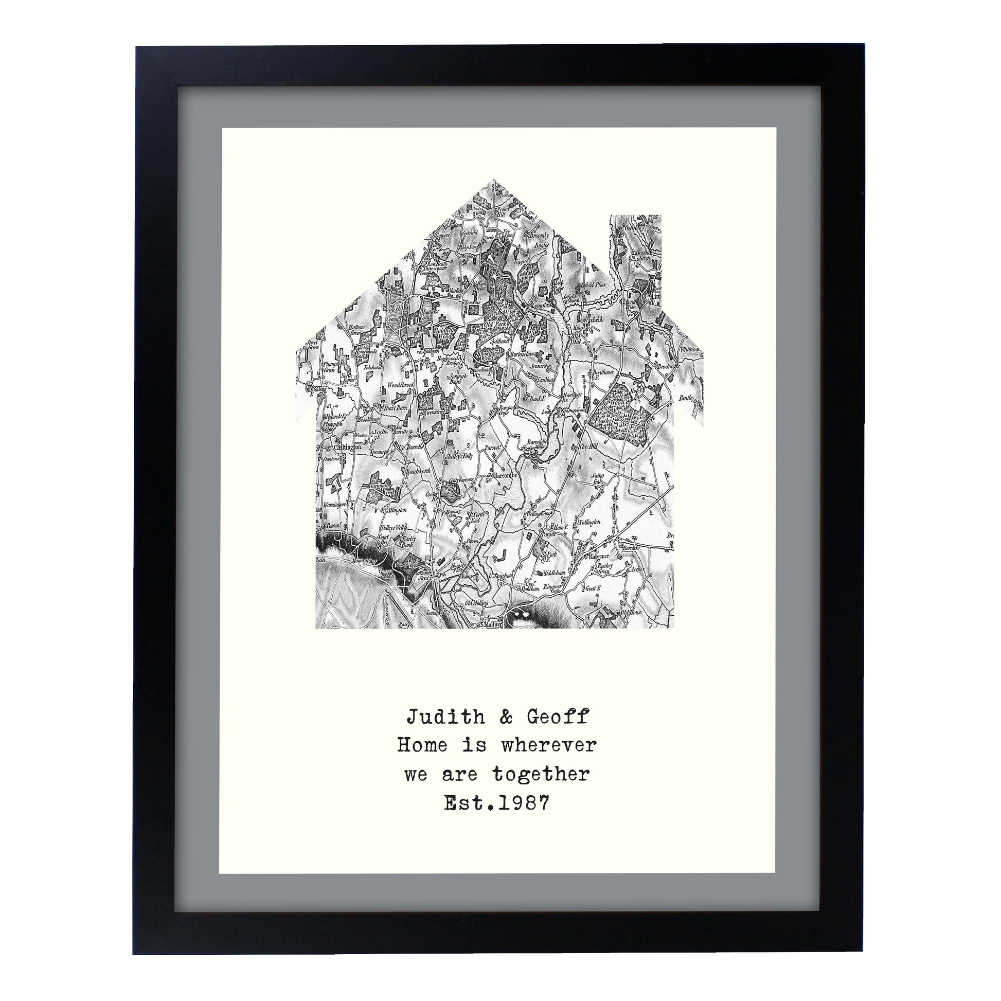 Details: Personalise this 1805 - 1874 Old Series Map Home framed print with a Full UK Postcode (see exclusions below), and a further 4 lines of up to 30 characters each for a message. To finish this stylish piece of art each piece is mounted and framed in a large black frame. The frame will display the local area surrounding your chosen postcode. Scale is 1:50,000 All maps are digital reproductions of original Ordnance Survey maps. Copyright Cassini Publishing Ltd PLEASE NOTE - Please ensure when entering your postcode that it is a valid postcode. If the postcode is incorrect it will delay your order. Maps are not available for Northern Ireland, The Channel Islands or the Isle of Man (any postcodes starting with BT, GY, JE or IM). NOTE: Due to the font type used please refrain from using all capitals in your personalised message. If the message is all in capitals you will find the personalisation extremely difficult to understand and may even result in personalisation being missed off the product. Many thanks for your cooperation. Ideal for Valentine's Day, Birthdays, Mother's Day, Father's Day.