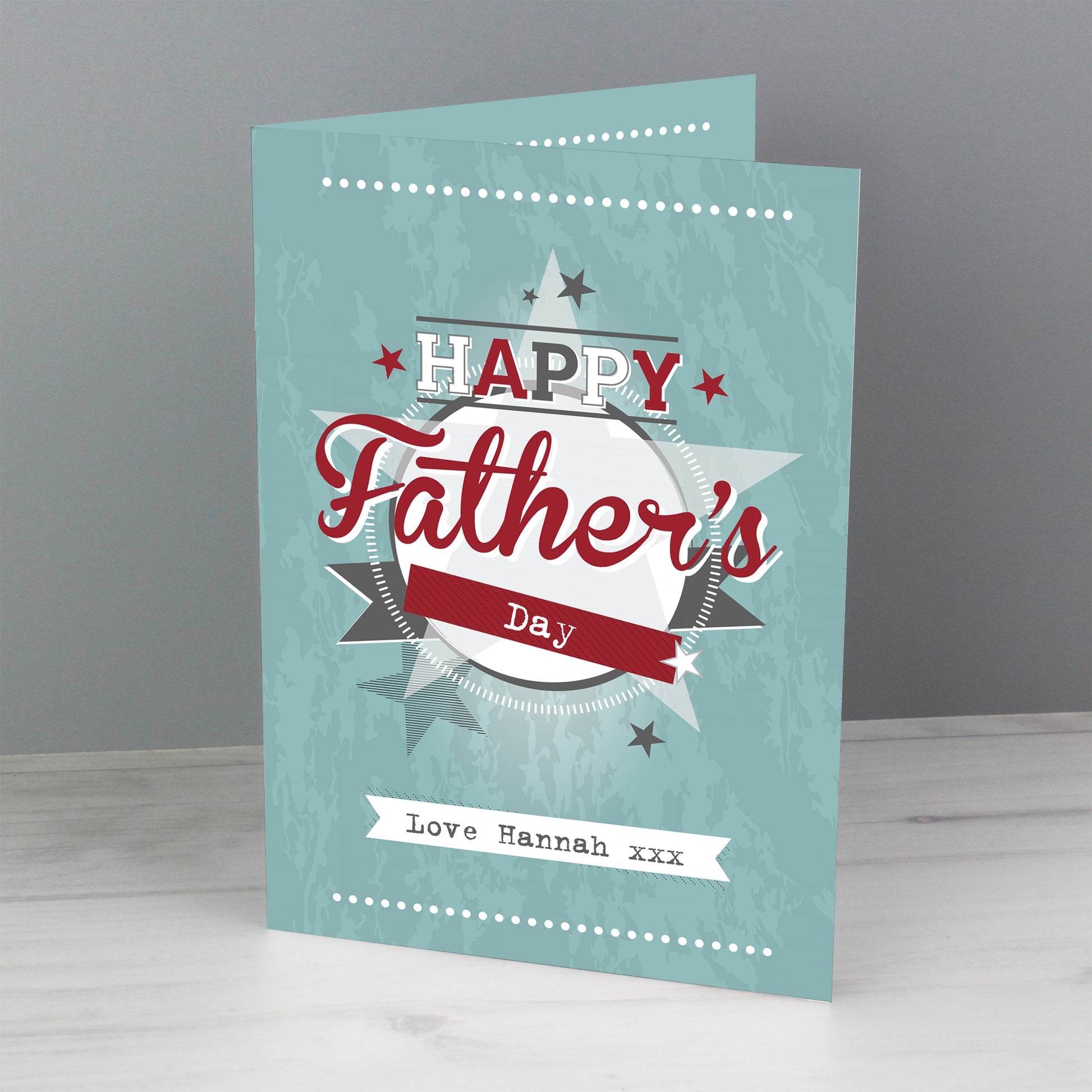 Details: This card will make a great gift for him for Father's Day or Birthdays. The card can be personalised on the front. The word 'HAPPY' is fixed. Underneath the word Happy the card can then be personalised with a line up to 10 characters (e.g. Birthday or Father's). You can then personalise inside the red banner up to 10 characters (e.g. Dad or day). Inside the white banner you can then add a message up to 20 characters in length. You can then personalise the inside of the card with 5 lines of text up to 25 characters per line. Please do not enter the Occasion on the front in UPPERCASE as this will result in the text being very difficult to read. All other personalisation on the card is case sensitive and will appear as entered. Perfect for Father's Day, Birthdays.
