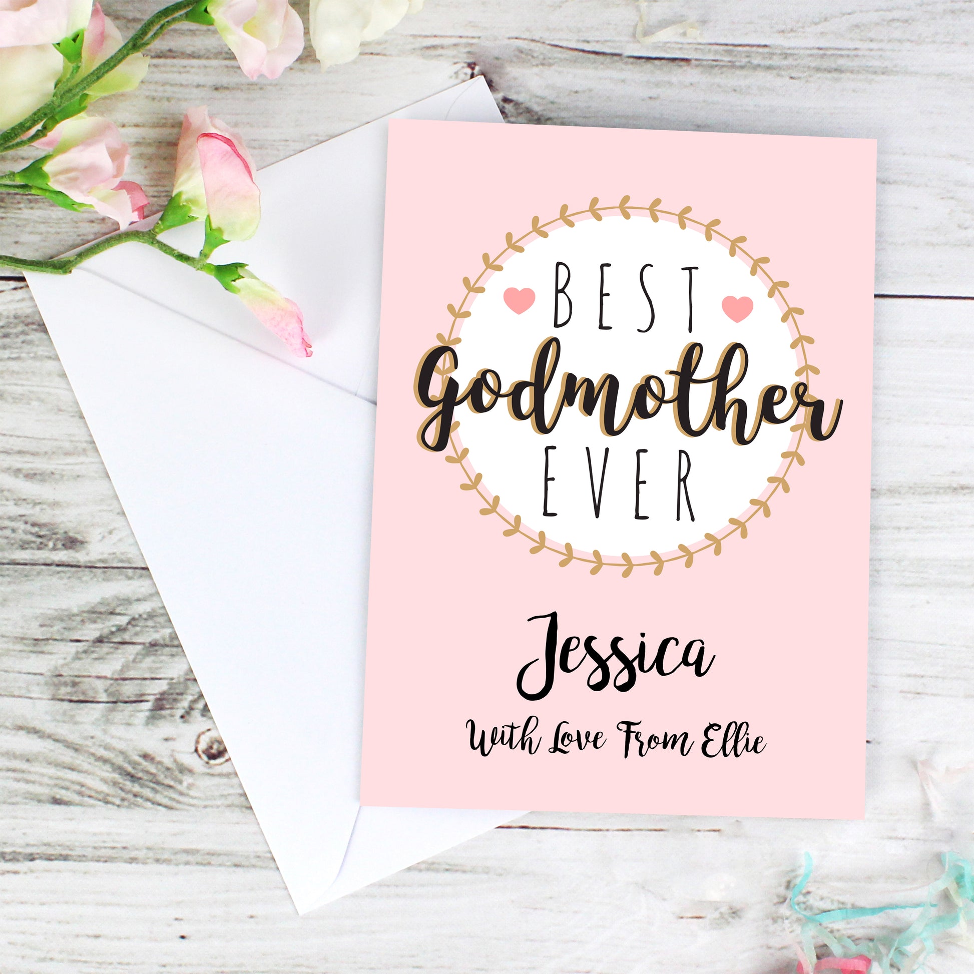Details: This 'Best Godmother' card is the perfect thank you for any Godmother. This card can be personalised with up to 2 lines on the front of the card, with up to 20 characters per line. This is followed by up to 5 lines of text on the inside of the card, with up to 20 characters per line. Please note the words 'Best Godmother Ever' are fixed text. All text will appear as entered. Please avoid using block capitals on the front of the card as this will make the personalisation hard to read. Ideal for Christenings.