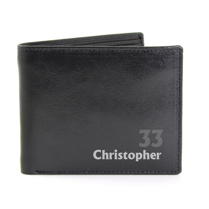Details: Personalise this leather wallet with any name of up to 12 characters, and an age of up to 2 characters. Leather is the material for a 3rd Wedding Anniversary and this wallet would make the perfect gift! Wallet includes a Change Holder, 3 Card Slots & Notes Holder. Material is leather Ideal for Birthdays, Father's Day.