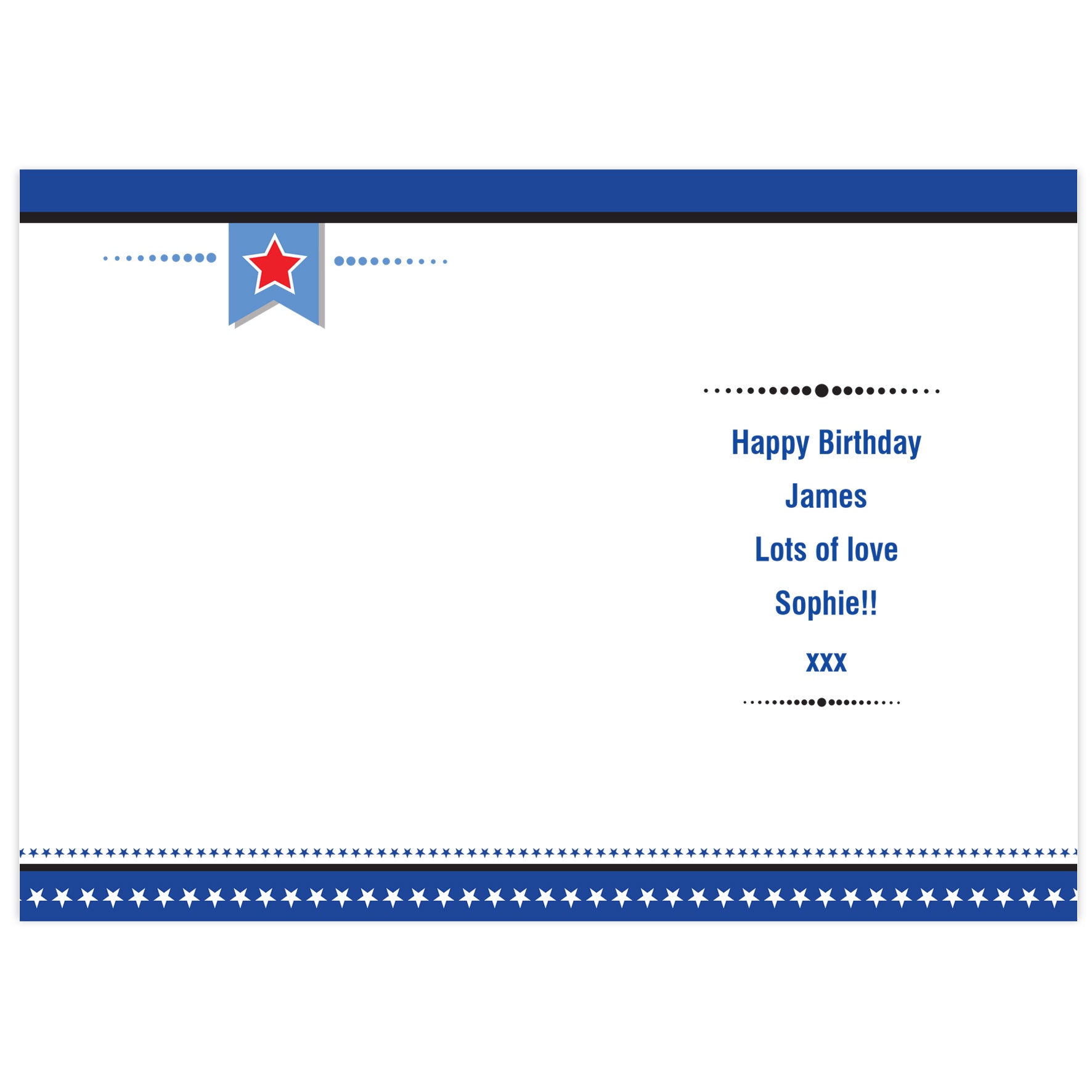 Details: Personalise this Birthday Star card with an age up to 2 characters, followed by 2 lines of up to 20 characters each on the front of the card. The inside of this card can also be personalised with 4 lines of up to 20 characters each. 'Today' is fixed text. NOTE: Due to the font type used please refrain from using all capitals in your personalised message. If the message is all in capitals you will find the personalisation extremely difficult to understand and may even result in personalisation being missed off the product. Many thanks for your cooperation. Ideal for Birthdays.