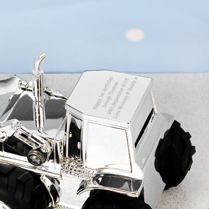 Details: This silver plated Digger Money Box can be personalised on the back with any message over 4 lines and up to 20 characters per line. Ideal for Birthdays, Christening Gifts, Thank You Presents, Christmas.