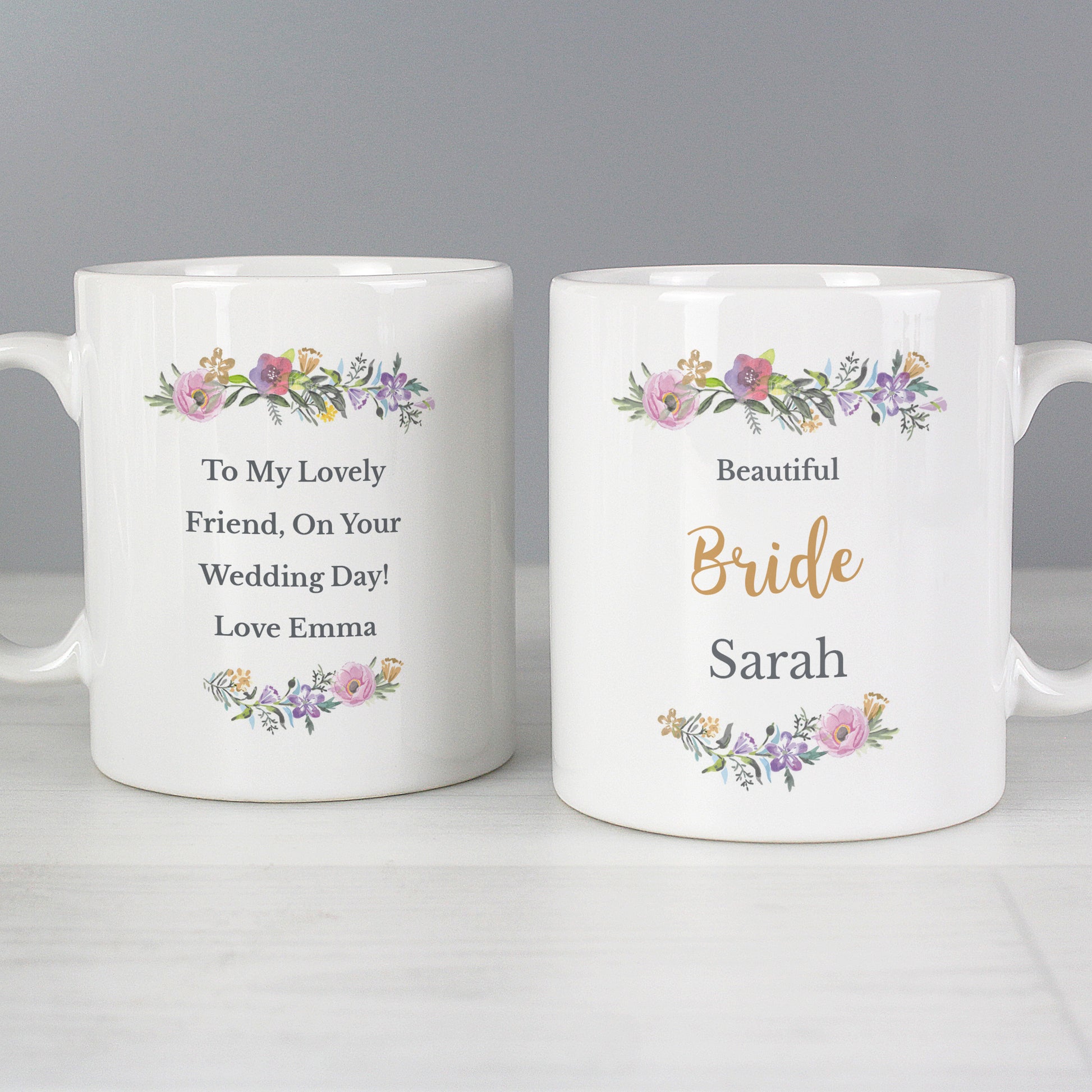 Details: This floral free text mug is perfect for any occasion! Personalise this Mug with: Front - Line 1 - up to 25 characters long Line 2 - (larger text) - up to 12 characters long Line 3 - up to 12 characters long Reverse - On the reverse of the mug - up to 4 lines with up to 20 characters per line The personalisation will appear as entered. What's more, this fantastic gift can also be made and despatched in 48 hours. Hand washing is recommended. Material is ceramic. Ideal for any occasion.