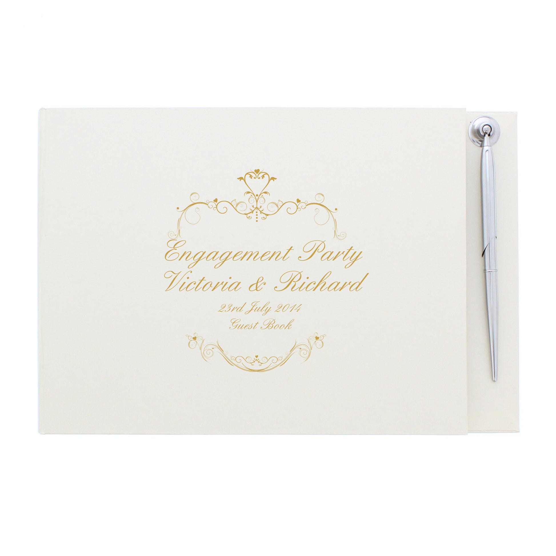 You are viewing: A Personalised Gold Ornate Swirl Hardback Guest Book & Pen