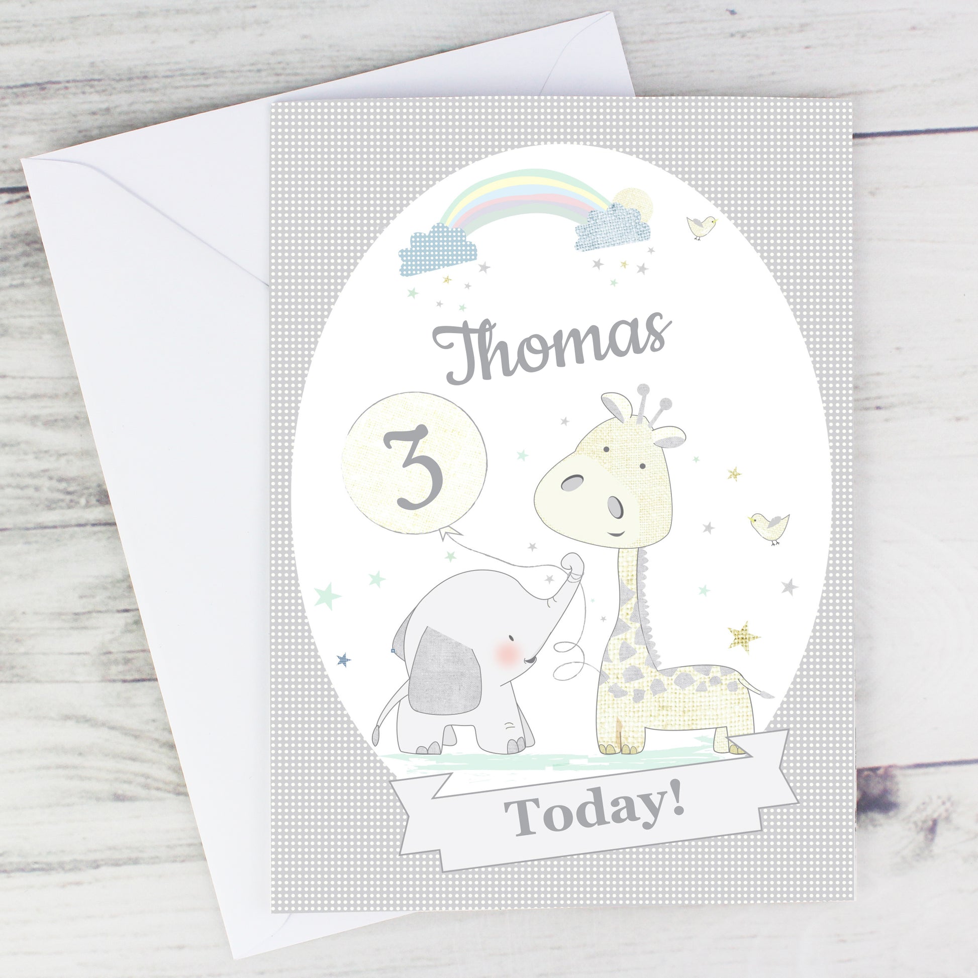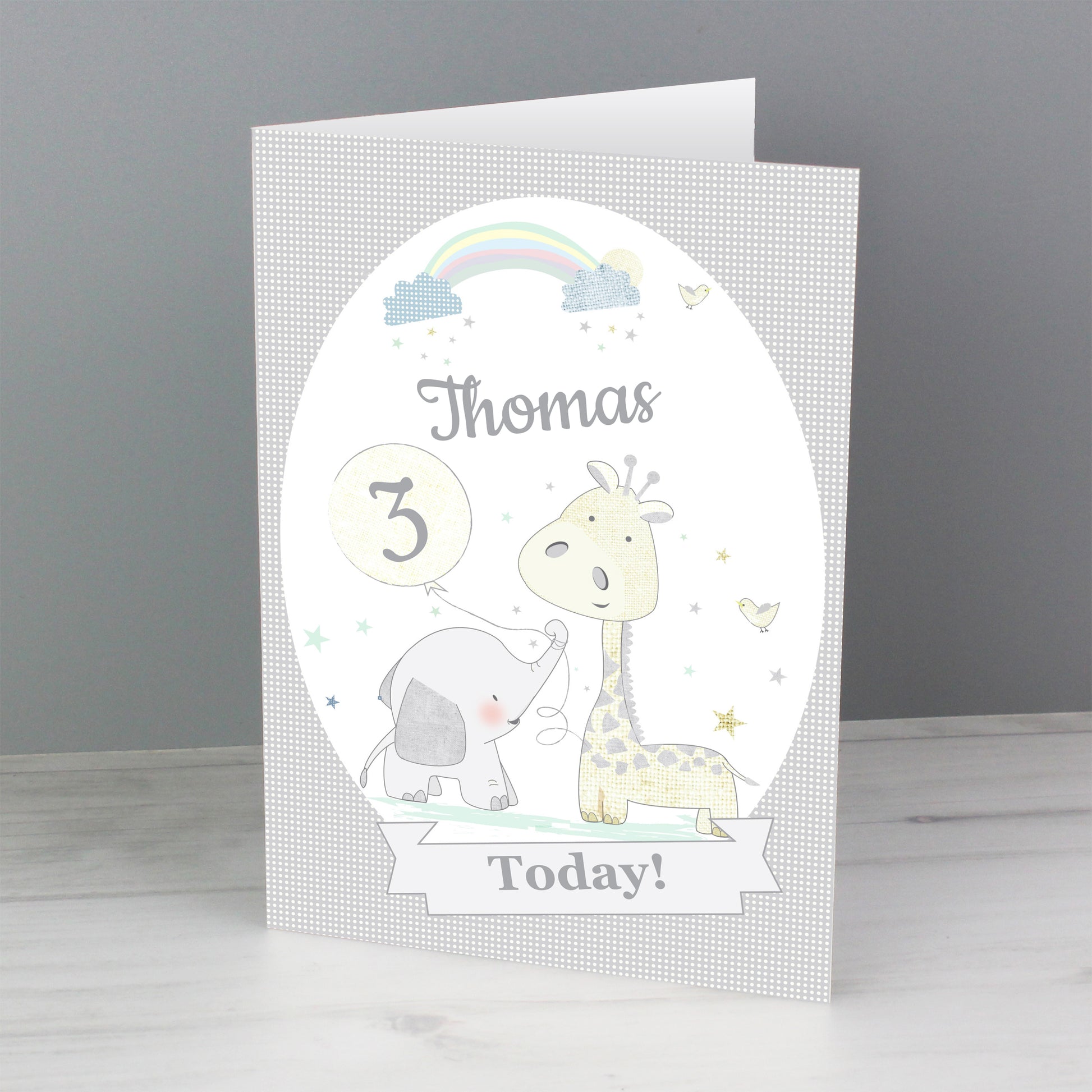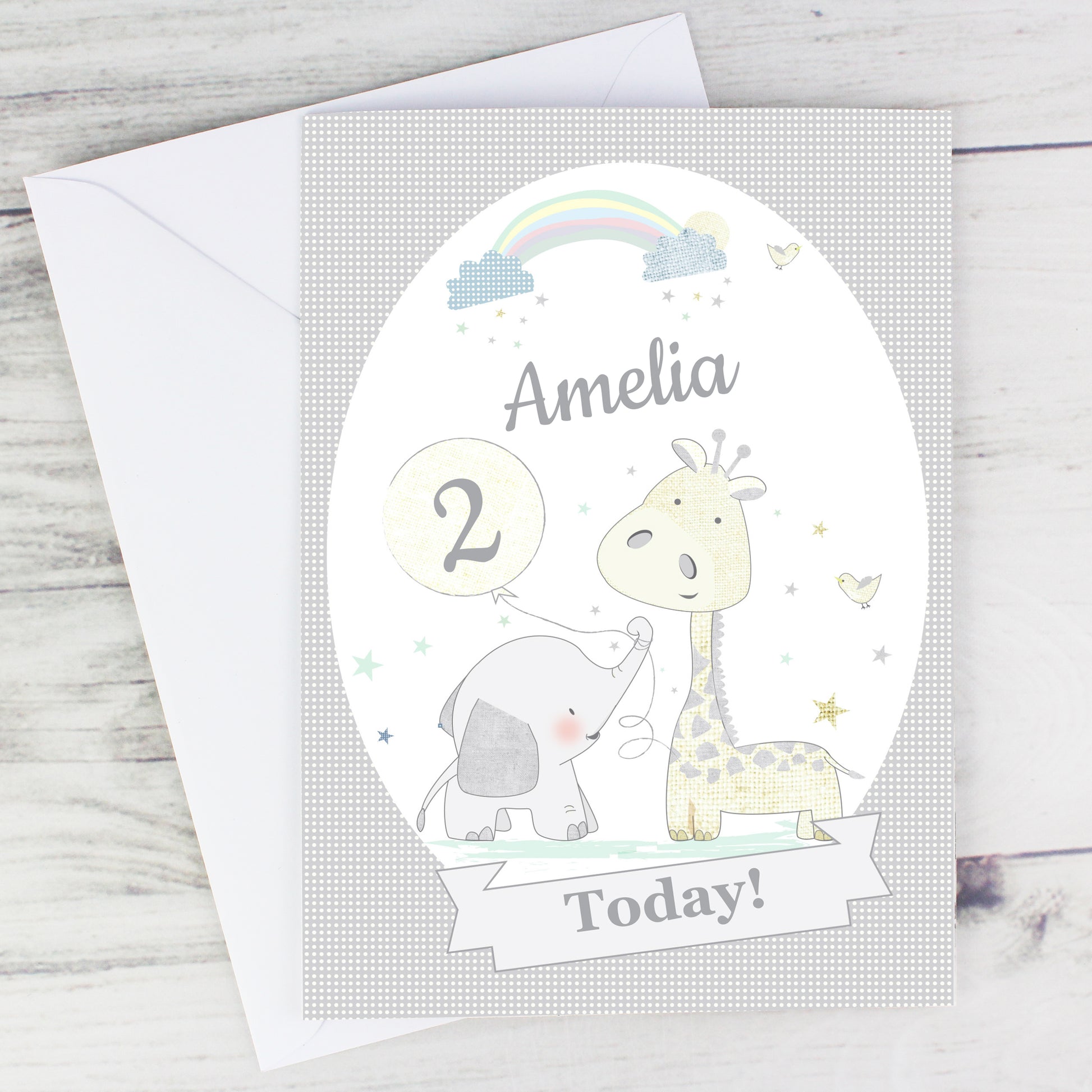 You are viewing: A personalised Hessian Giraffe & Elephant greeting card