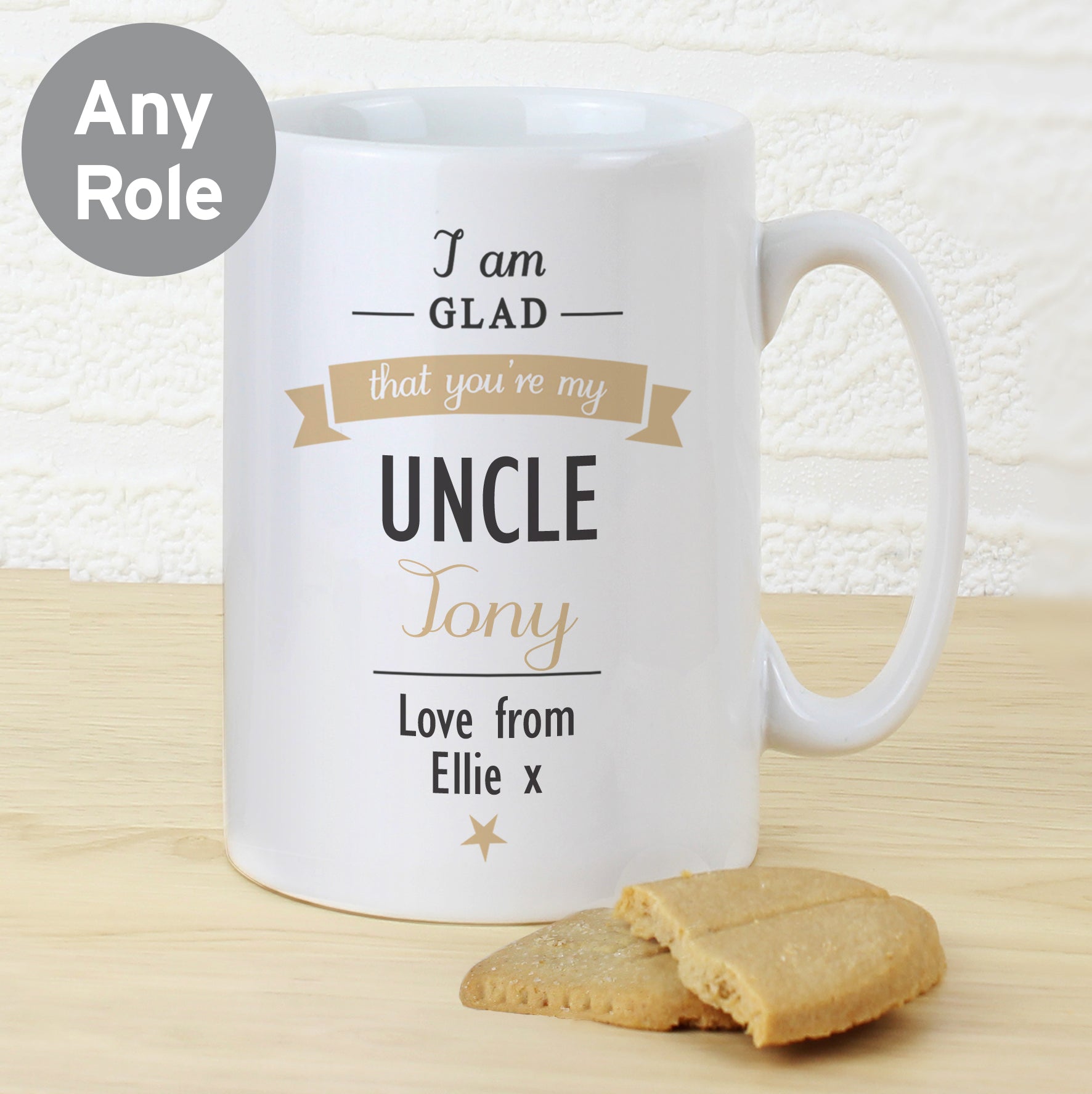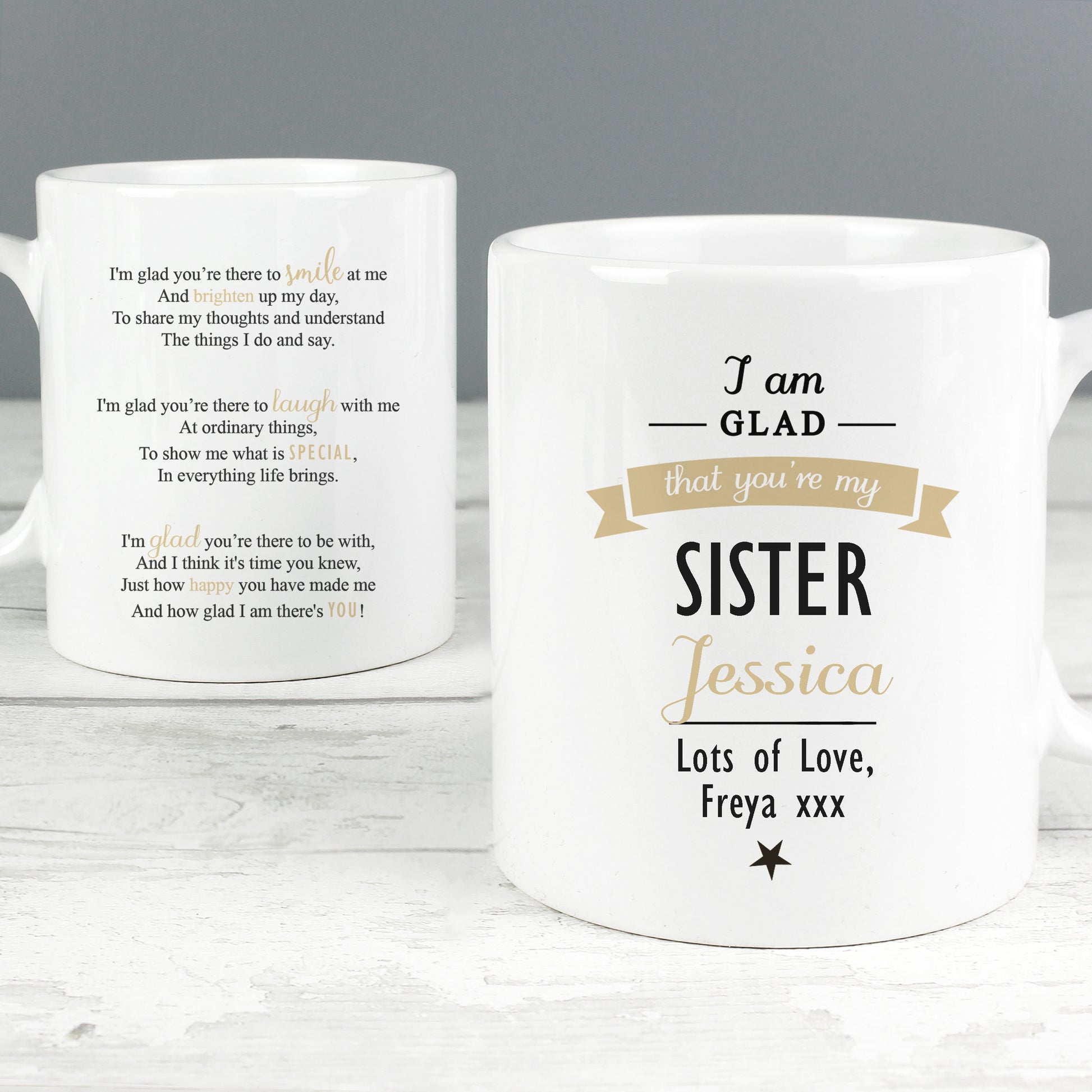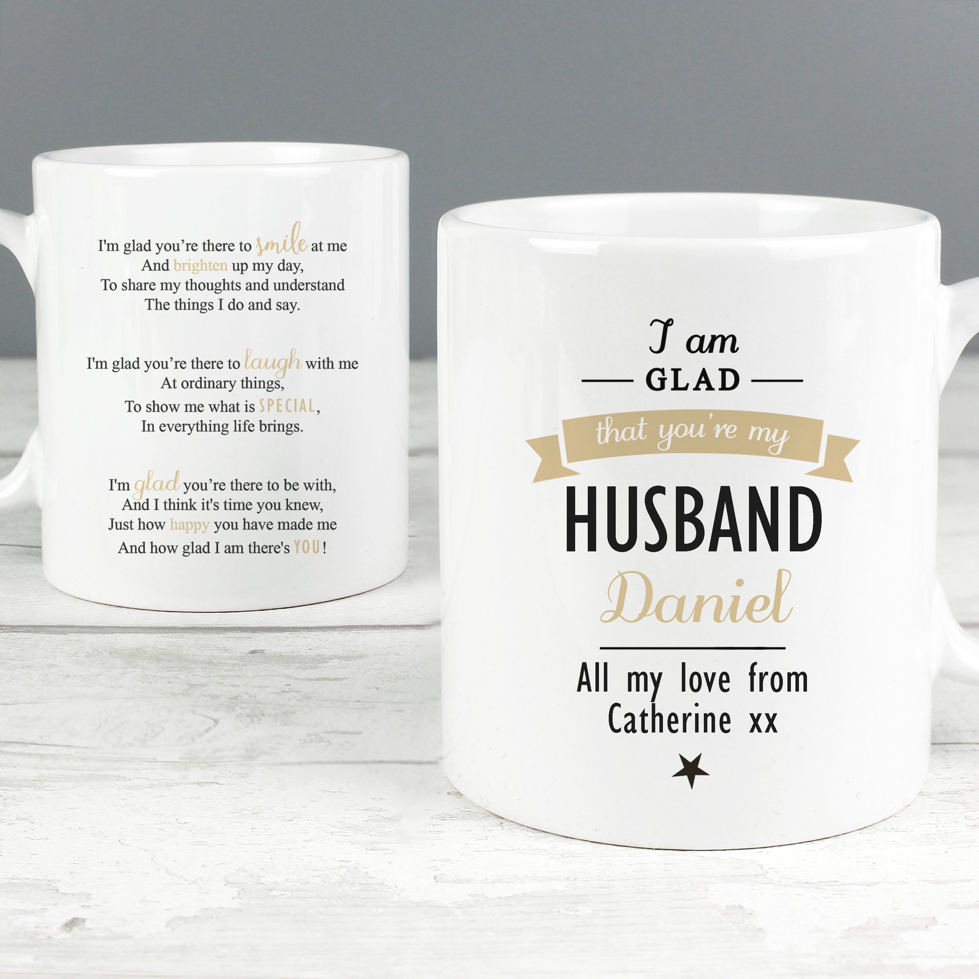 Details: This I Am Glad... Slim Mug is a perfect way to share a sentiment for a special recipient. The mug also features a heartfelt poem on the reverse. This mug can be personalised with a title up to 12 characters, a name up to 12 characters and a message over 2 lines with up to 20 characters per line. Please note that the roll will appear in block capitals, however the rest of the text is case sensitive and will appear as entered. Please avoid entering your chosen name in block capitals as this may result in the text being difficult to read. The text 'I am glad that you're my' is fixed and cannot be amended. The poem on the reverse of the mug reads- I'm glad you're there to smile at me And brighten up my day, To share my thoughts and understand The things I do and say. I'm glad you're there to laugh with me At ordinary things, To show me what is special In everything life brings. I'm glad you're there to be with, And I think it's time you knew, Just how happy you have made me And how glad I am there's you! What's more, this fantastic gift can also be made and despatched in 48 hours. Hand washing is recommended. Material is ceramic. Ideal for any Occasion.