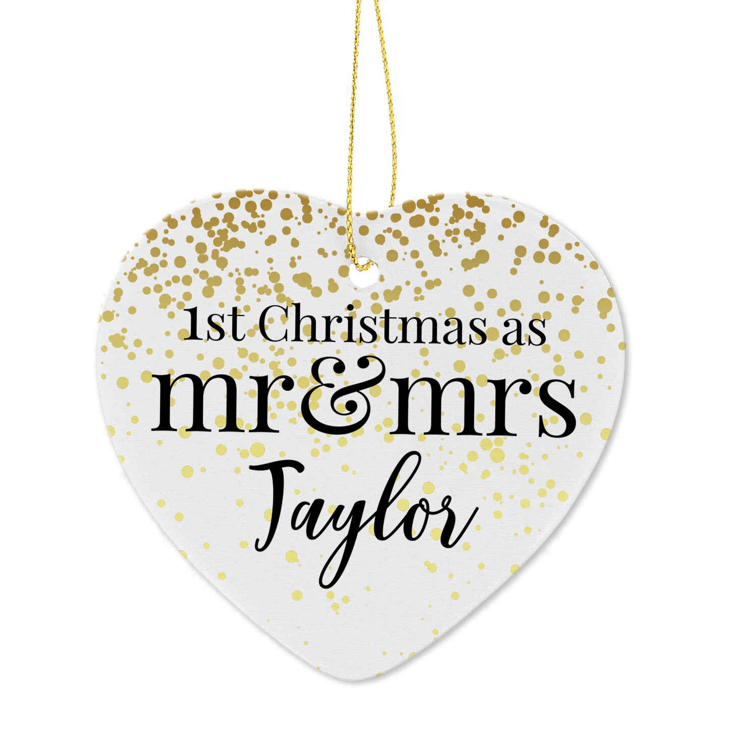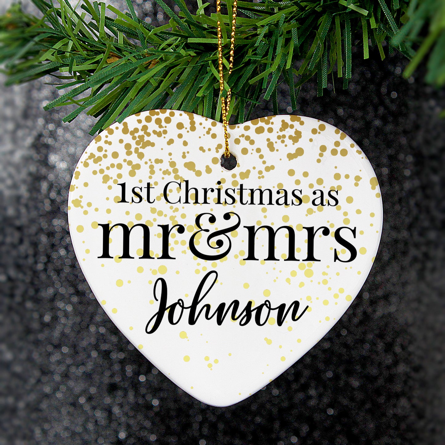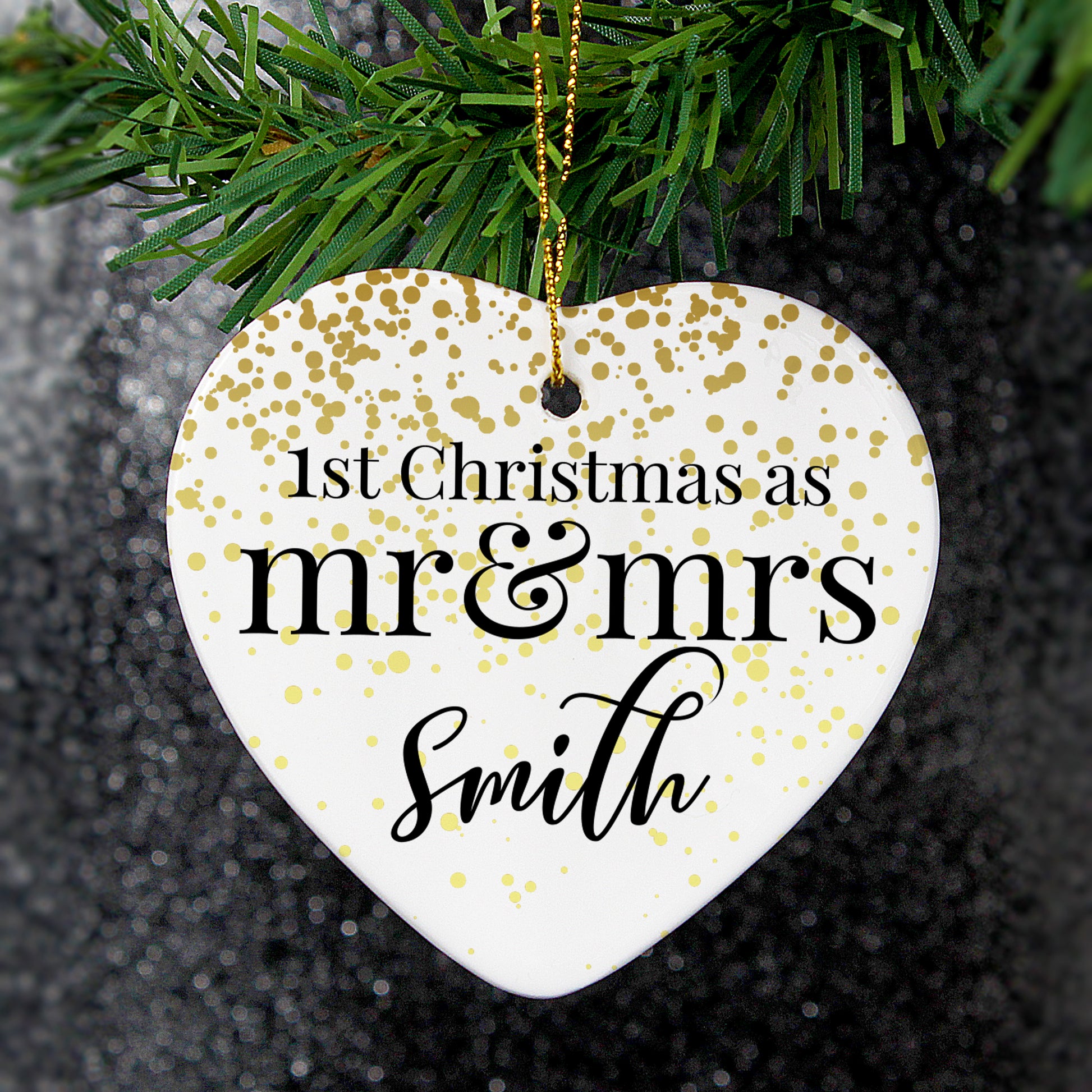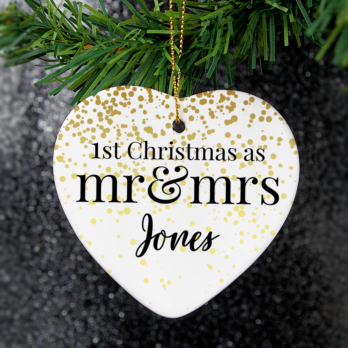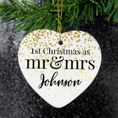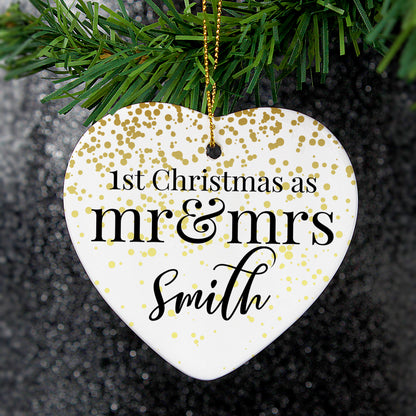 Personalised Mr and Mrs 1st Christmas Ceramic Heart Decoration - Personalise It!