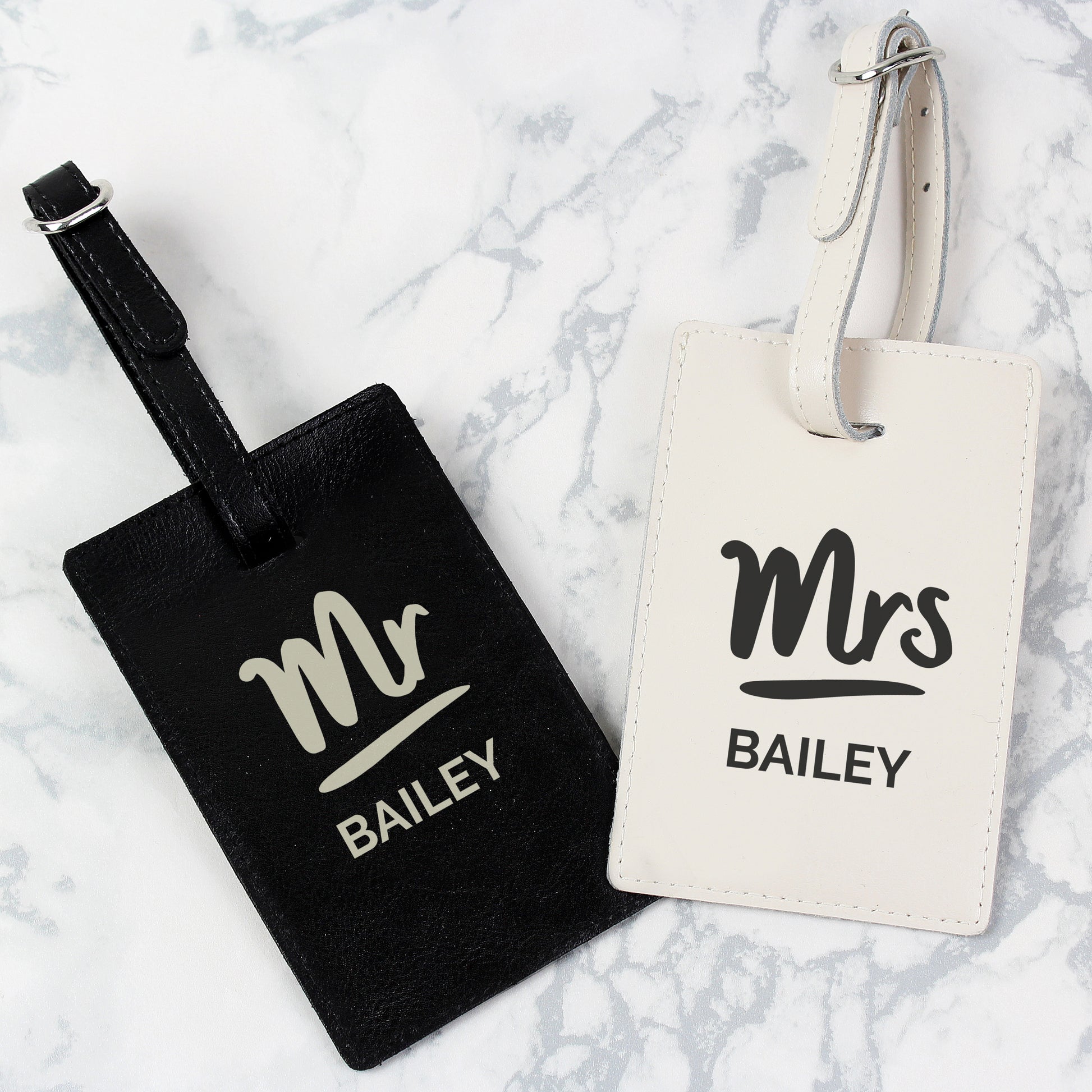 You are viewing: A Personalised Mr & Mrs Black & Cream Luggage Tag Set