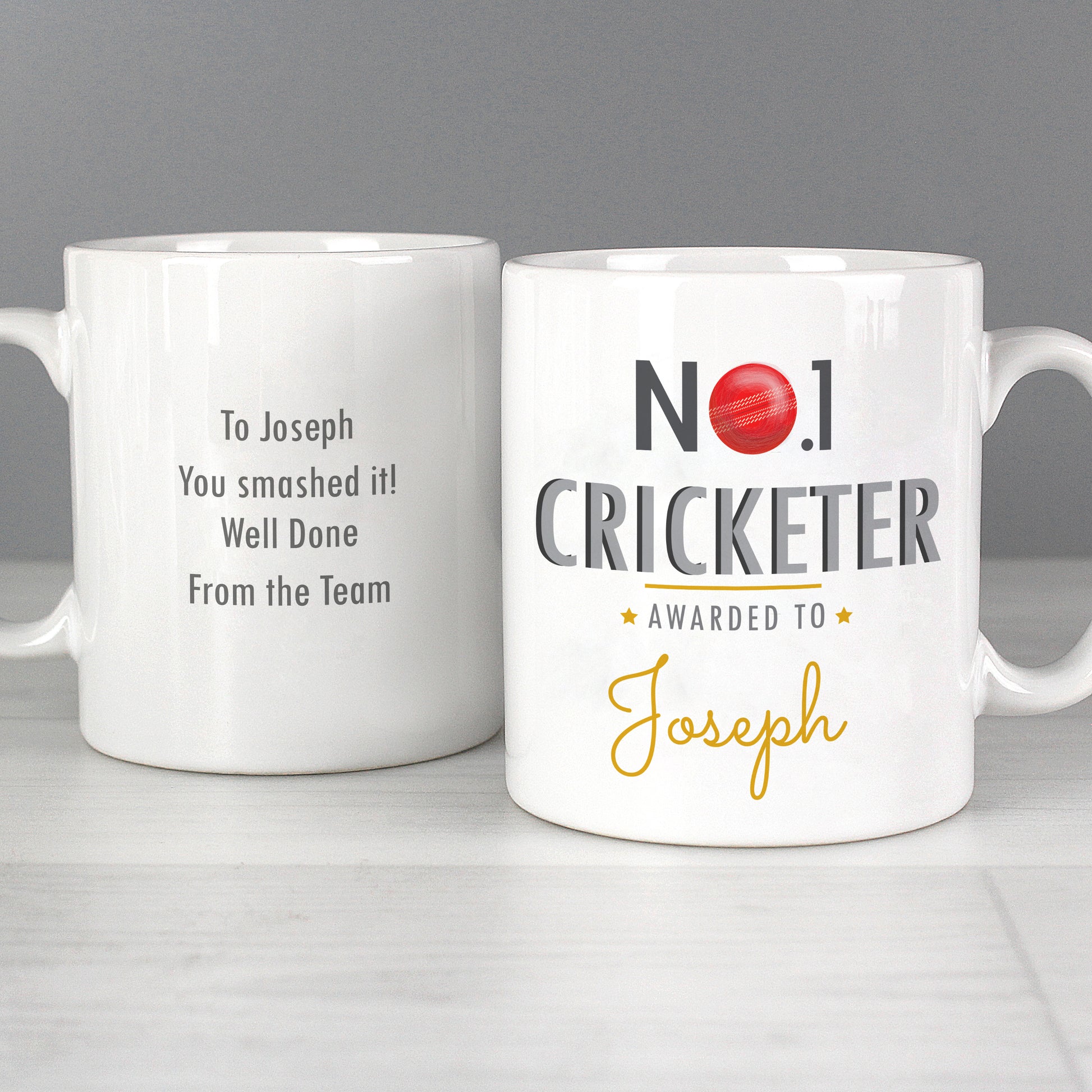 Details: Bowl any recipient over with this Personalised No.1 Cricketer Mug! The front of the mug can be personalised with a name up to 12 characters. The reverse of the mug can be personalised with 4 lines of text, with up to 20 characters per line. All text is case sensitive and will appear as entered. Please avoid entering your text in block capitals, as this may make the personalisation difficult to read. The words 'No.1 Cricketer' and 'awarded to' are fixed and cannot be amended. What's more, this fantastic gift can also be made and despatched in 48 hours. Ideal as a stocking filler or a Secret Santa gift Hand washing is recommended. Material is ceramic. Ideal for Father's Day and Birthdays.