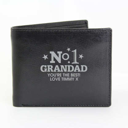 Details: Personalise this leather wallet, with a name up to 12 characters and a message over 2 lines up to 20 characters per line. The words 'No 1' are a fixed part of the design. All text will appear in fixed uppercase. Leather is the material for a 3rd Wedding Anniversary and this wallet would make the perfect gift! Wallet includes a Change Holder, 6 Card Slots & Notes Holder. Material is leather. Ideal for Birthdays, Father's Day, Wedding gift, Thank You presents, Christmas gifts.