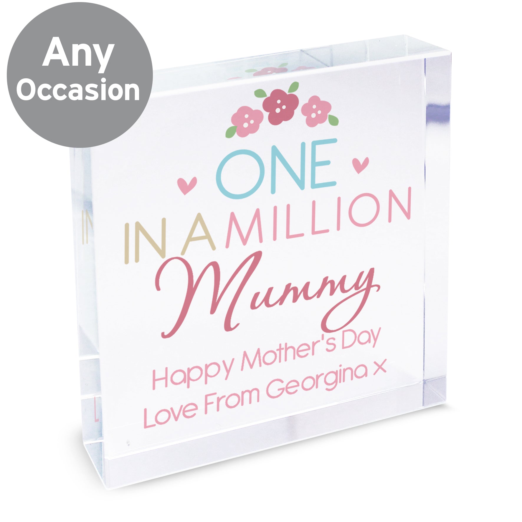 Details: Personalise this One in a Million Crystal Token with a role/name up to 12 characters and a message over 2 lines of up to 20 characters per line. 'One in a Million' is fixed text. All personalisation is case sensitive and will appear as entered. Due to the font type used, please refrain from using capitals in the role/name. Comes presented in a black gift box. Ideal for- Birthdays, Anniversary, Valentines, Mother's Day, Christmas.