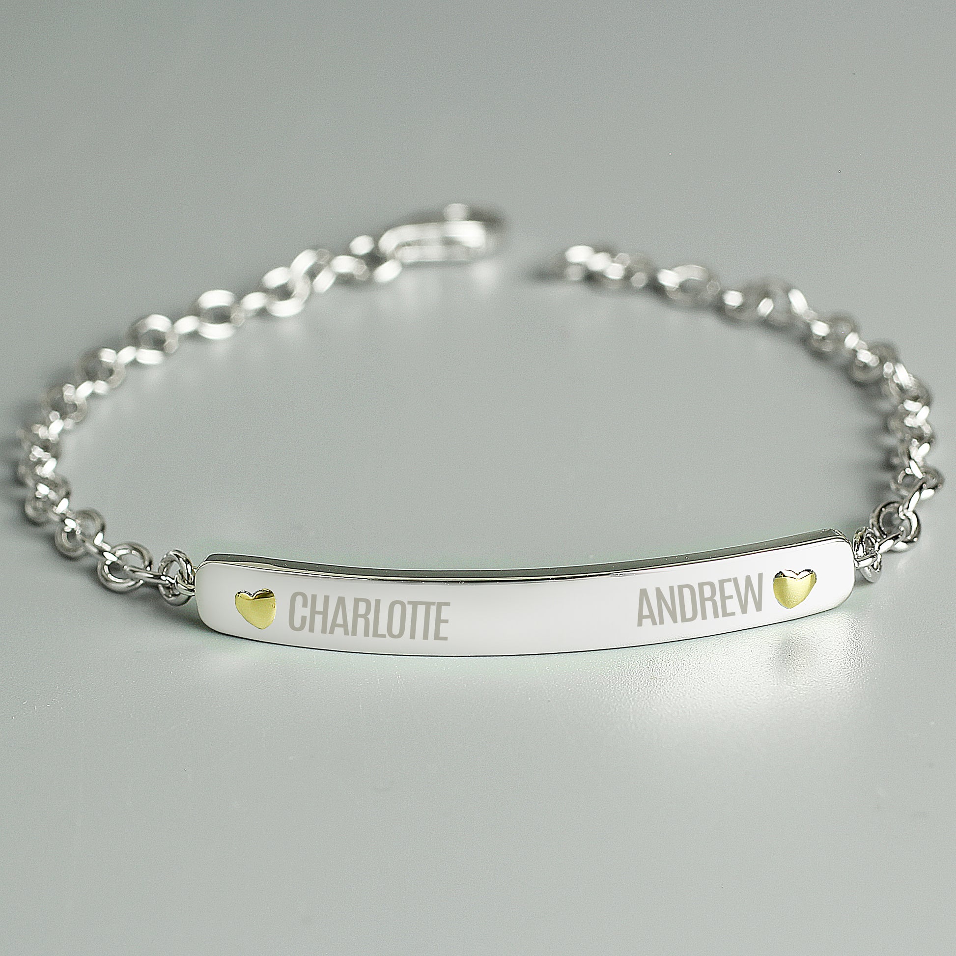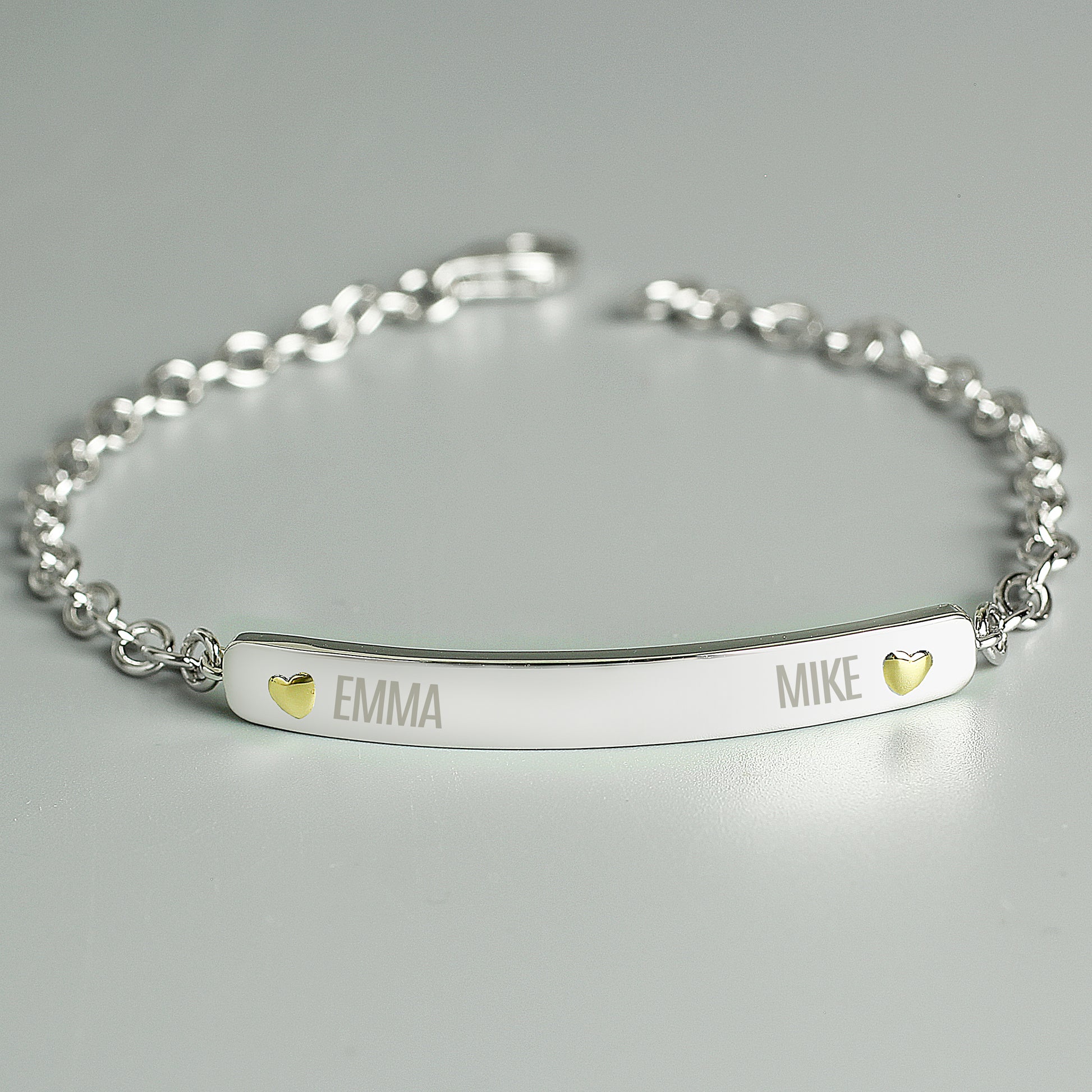 You are viewing: A Personalised Two Names Sterling Silver and 9ct Gold Bar Bracelet