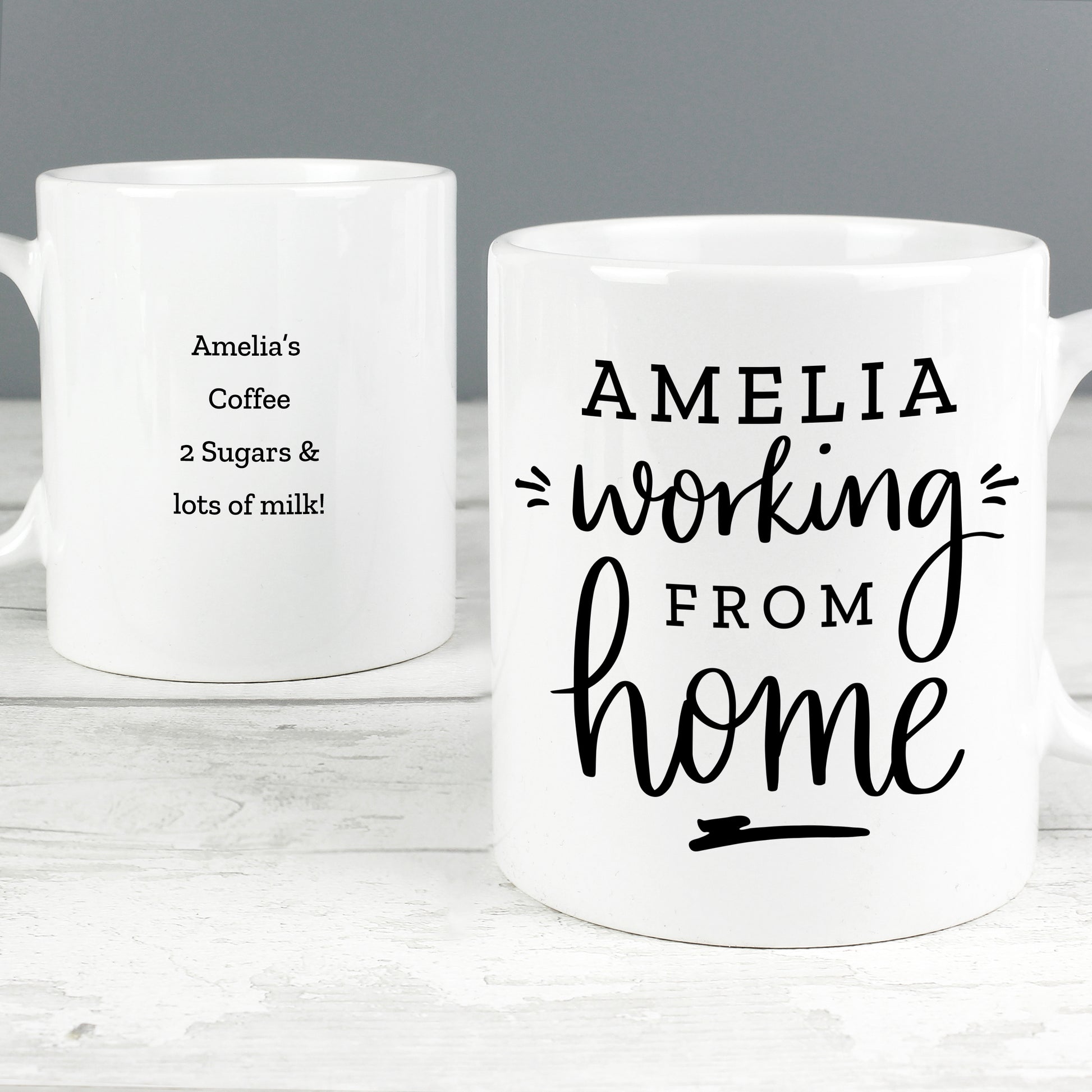 Details: Brighten someone's day with this lovely personalised working from home mug. The front of the mug can be personalised with a name of up to 12 characters including spaces and punctuation. The reverse of the mug can also be personalised with any message over 4 lines up to 25 characters per line. 'Working From Home' is fixed text Personalisation will appear in UPPERCASE on the front as will appear as entered on the back. Hand washing is recommended to maintain the quality of your personalisation. Material is ceramic. Perfect for any occasion.