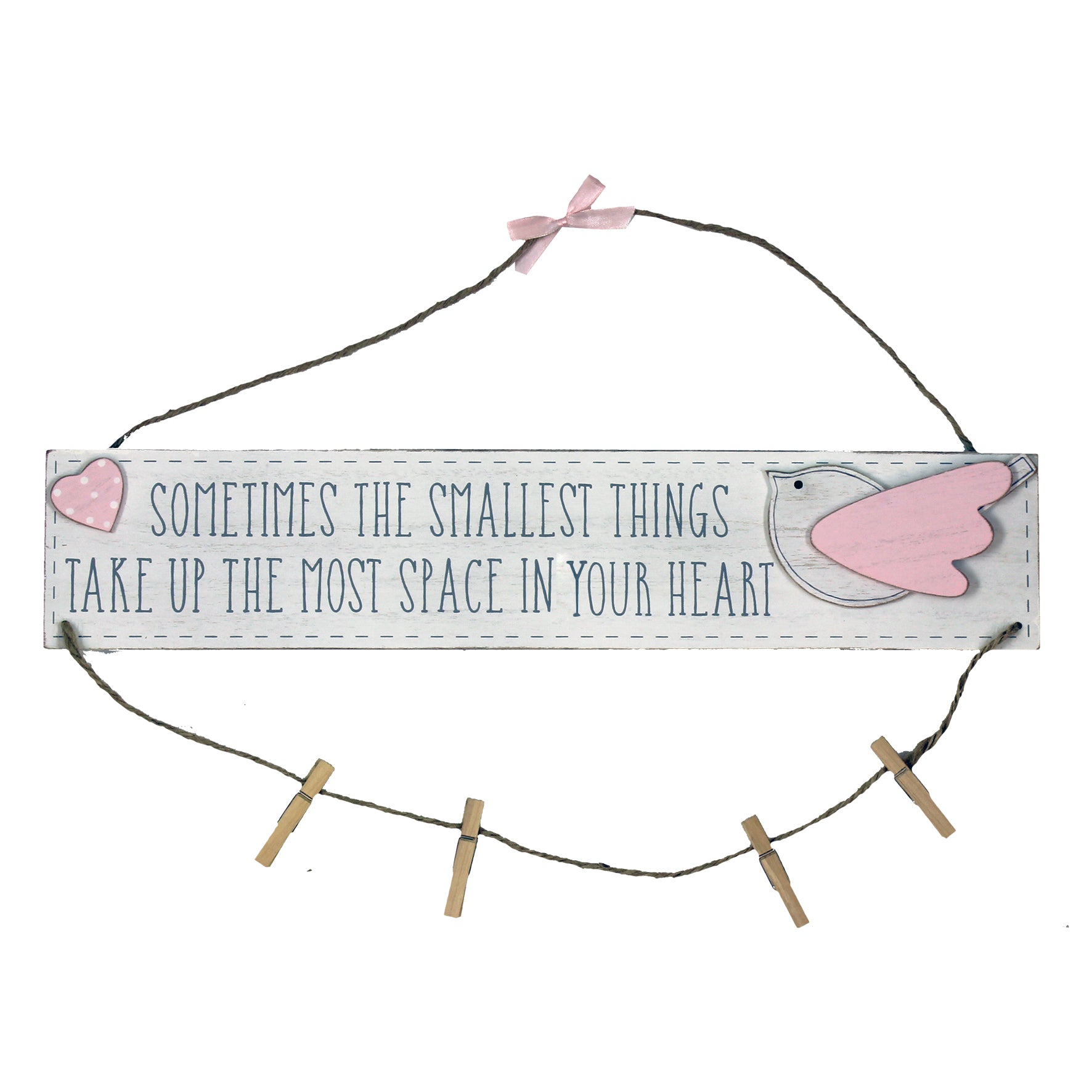 Details: A pretty white and pink hanging wooden plaque with pegs from the Petit Cheri baby range.