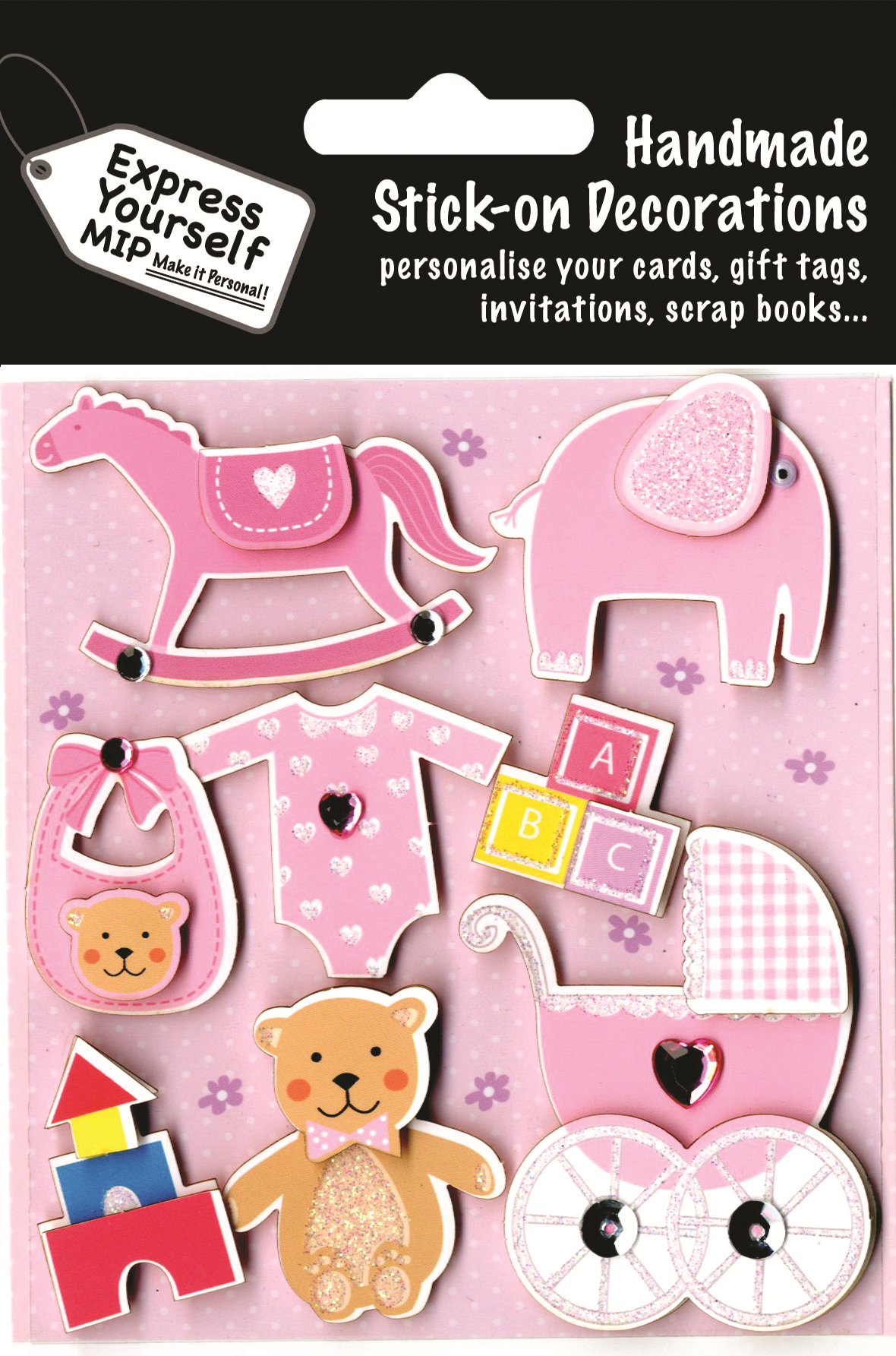 Details: A gorgeous range of glitter finished stick-on adhesive toppers from the popular Express Yourself DIY Range. Toppers are the perfect way to personalise a greeting card and may also be used for invitations, gifts, gift tags, scrap books and much more besides. They are easy to use, they simply stick on.