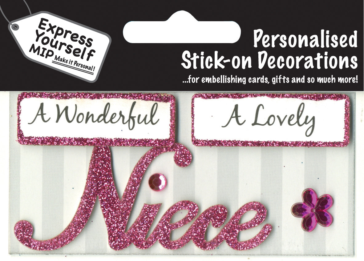 Details: A gorgeous range of glitter finished stick on adhesive toppers from the popular Express Yourself DIY Range. Toppers are the perfect way to personalise a greeting card and may also be used for invitations, gifts, gift tags, scrap books and much more besides. They are easy to use, they simply stick on.