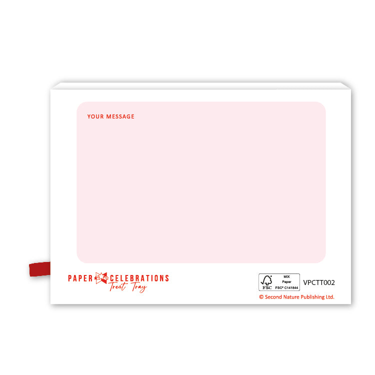 Good to know: This enchanting card is brimming with surprises! It features a delightful 3D pop-out design and a hidden slide-out tray filled with 8 delicious individually wrapped milk chocolates. Printed with eco-friendly soy inks and paired with a white envelope, it’s the perfect combination of sweetness and sustainability.