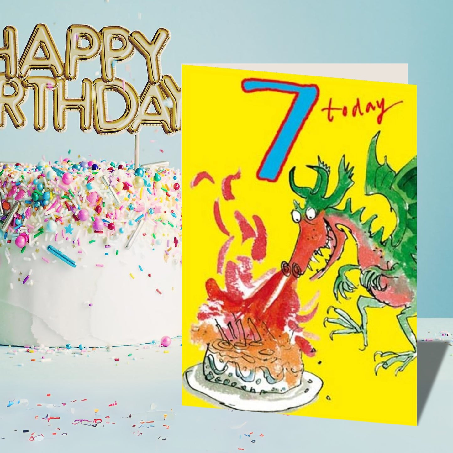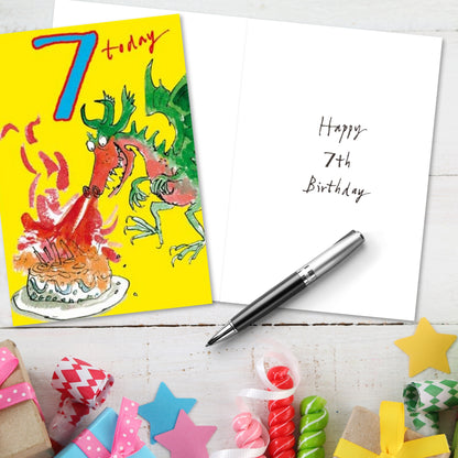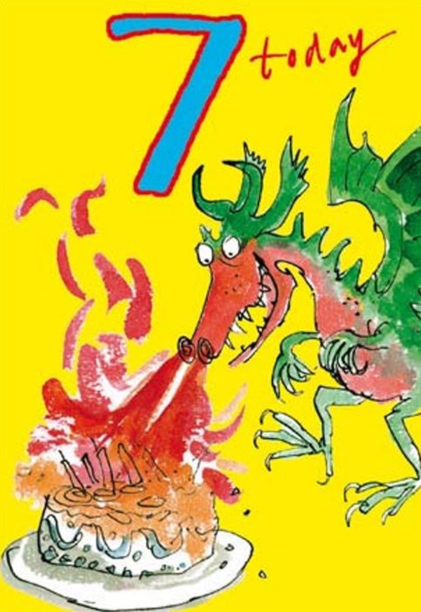 Details: A popular greeting card from Britain's best-loved illustrator Quentin Blake featuring a green dragon lighting candles with it's fire breath