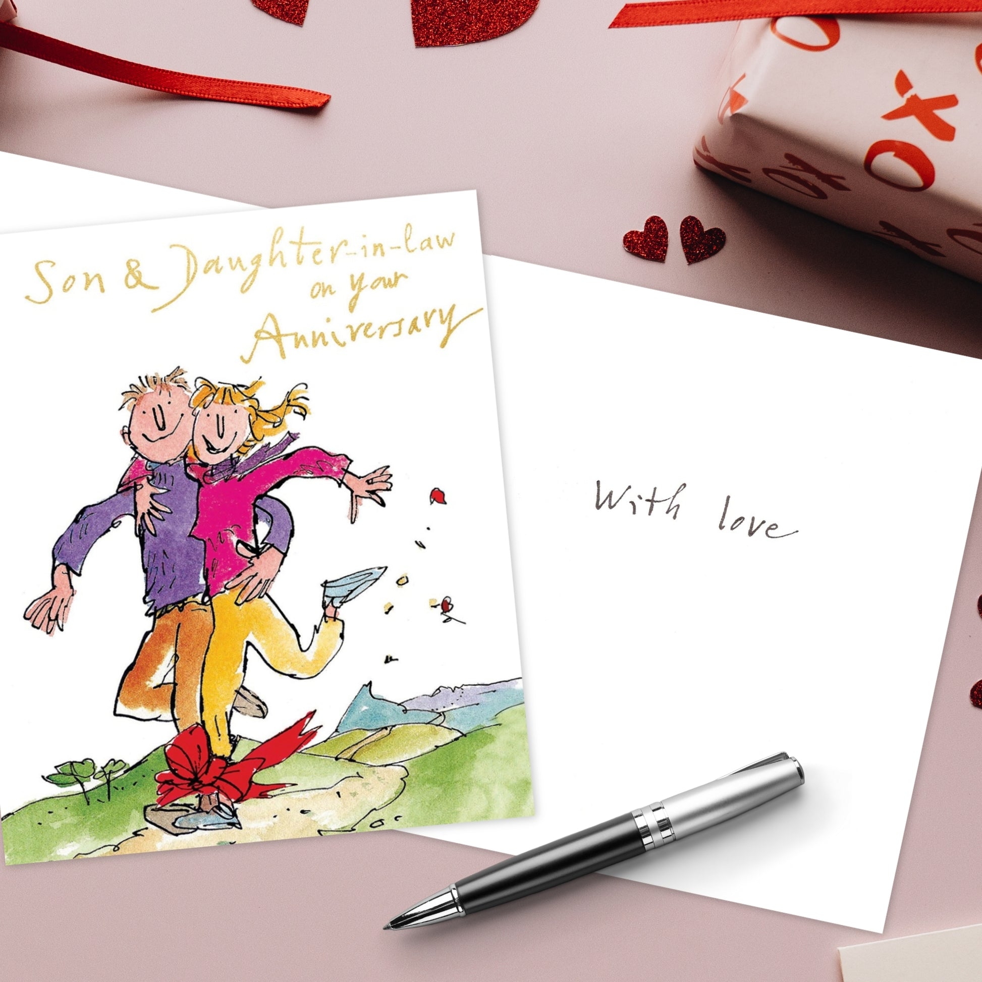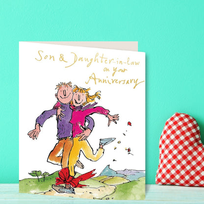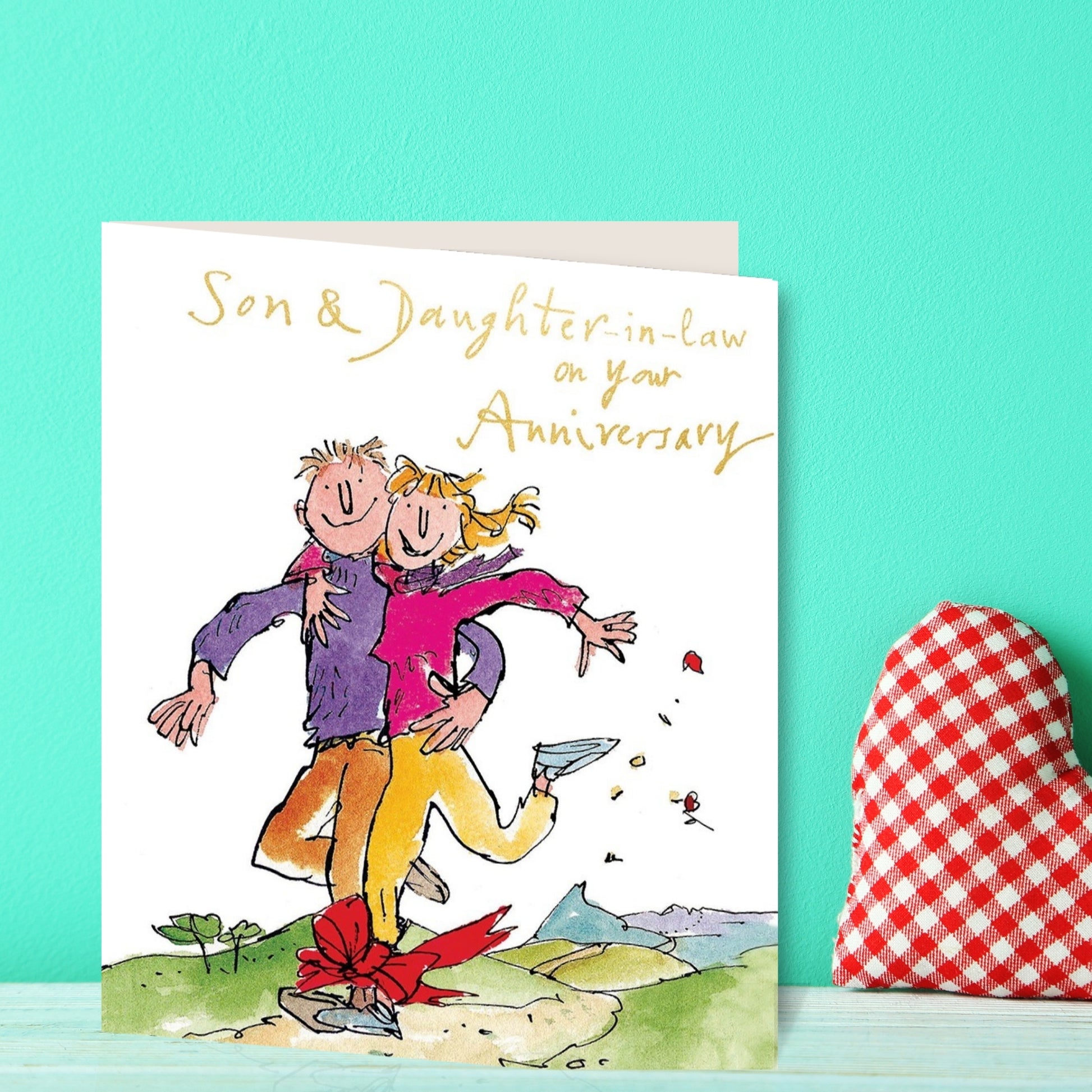 Looking for a truly heartfelt anniversary gift for your son and daughter-in-law? This beautiful Quentin Blake greeting card is the perfect expression of love and celebration, capturing the joy and deep bond they share, and reminding them how incredibly special they are to you.