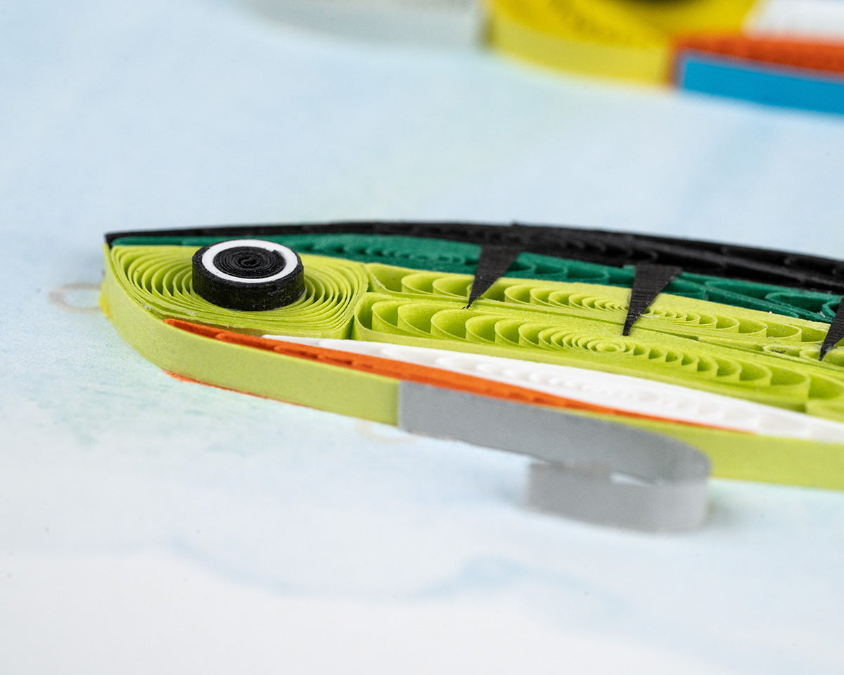 Looking for greeting card ideas for someone special? The playful quilled greeting card with three bright fishing lures is an unexpected surprise that will make any special someone feel loved. The intricate details and hand-finished design create a unique and heartfelt way to capture your love in a single gesture.