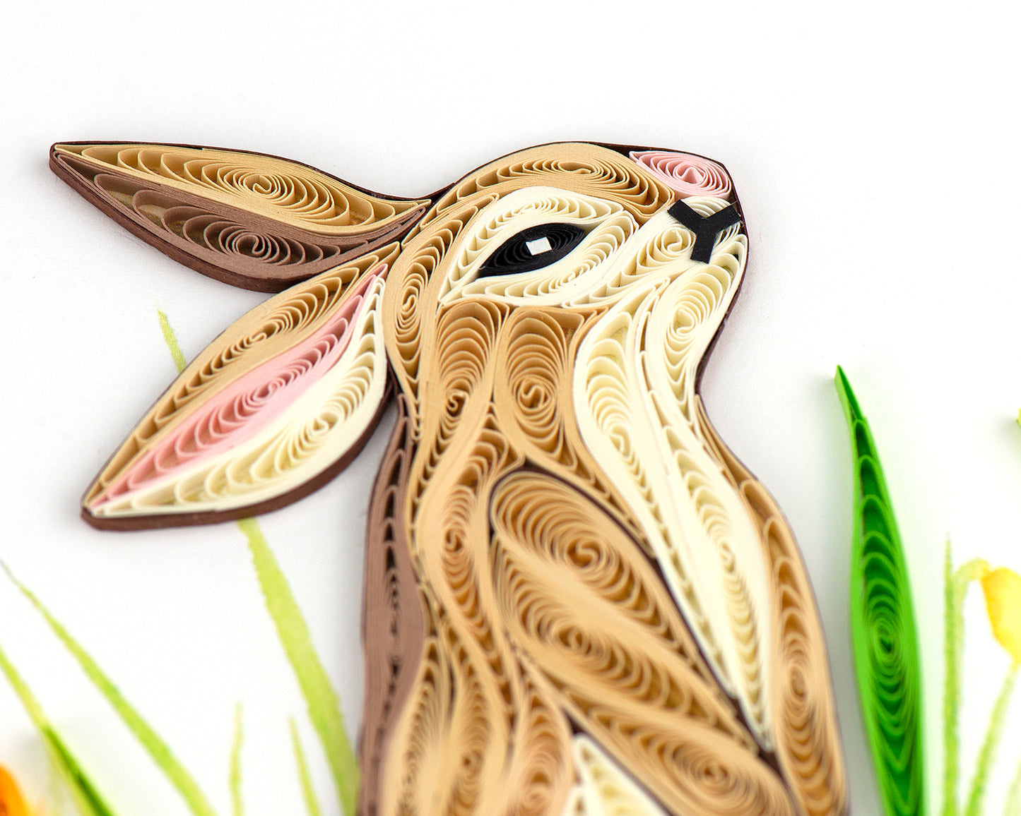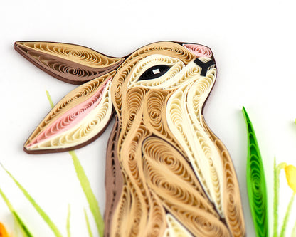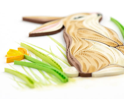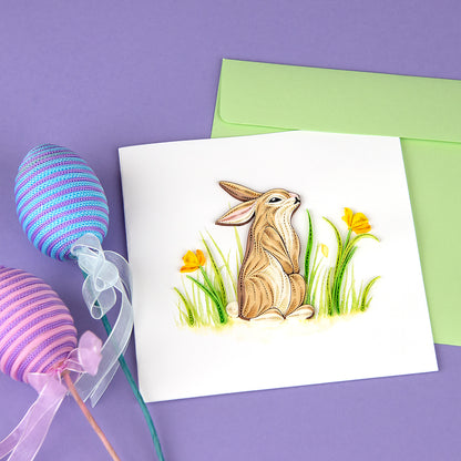 Hop into a meadow of beauty and tranquillity with this quilled rabbit card!