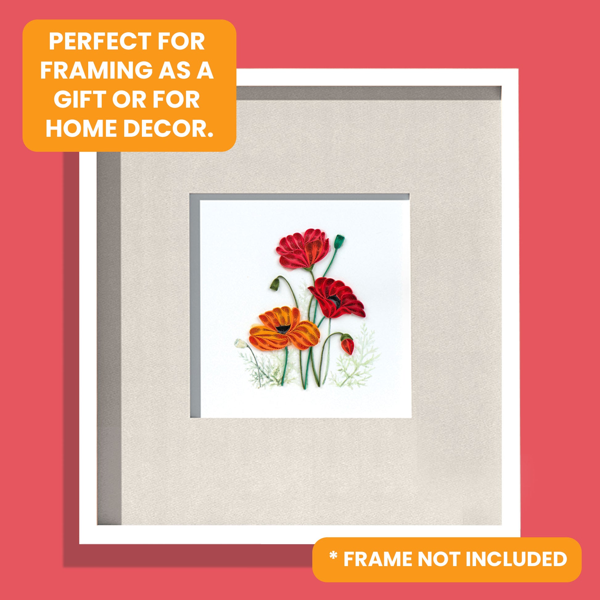 Looking for greeting card ideas for someone special? Receiving this delicate quilled greeting card featuring bright red and orange poppies would bring love and surprise to a special someone. The intricate details and vibrant colours capture the excitement of the occasion and show how much they're loved.