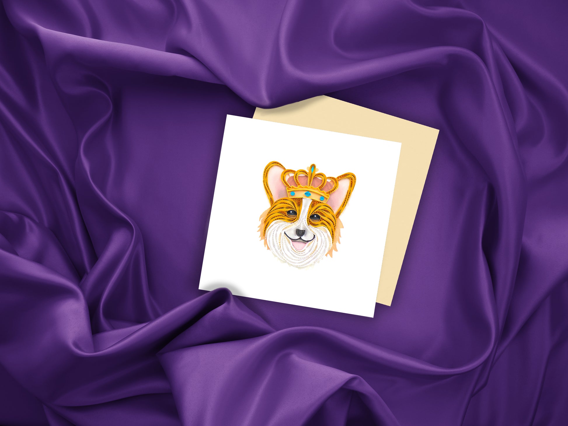 Looking for greeting card ideas for someone special? Capture how much you care with this magical greeting card featuring a smiling corgi wearing a crown, perfect for surprising a special someone. The intricate details and handmade touch show how much you adore them, making it a gift that will truly be cherished.