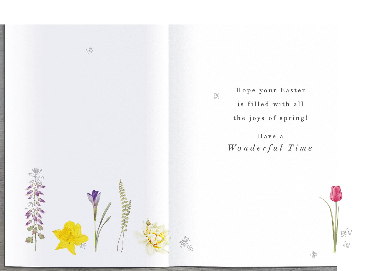 Looking for greeting card ideas for her? This beautiful Easter greeting card with vibrant blossoms will bring joy and happiness to your special someone. Capture your feelings with this colourful charitable greeting card and make this Easter memorable with an emotive and heartfelt message.