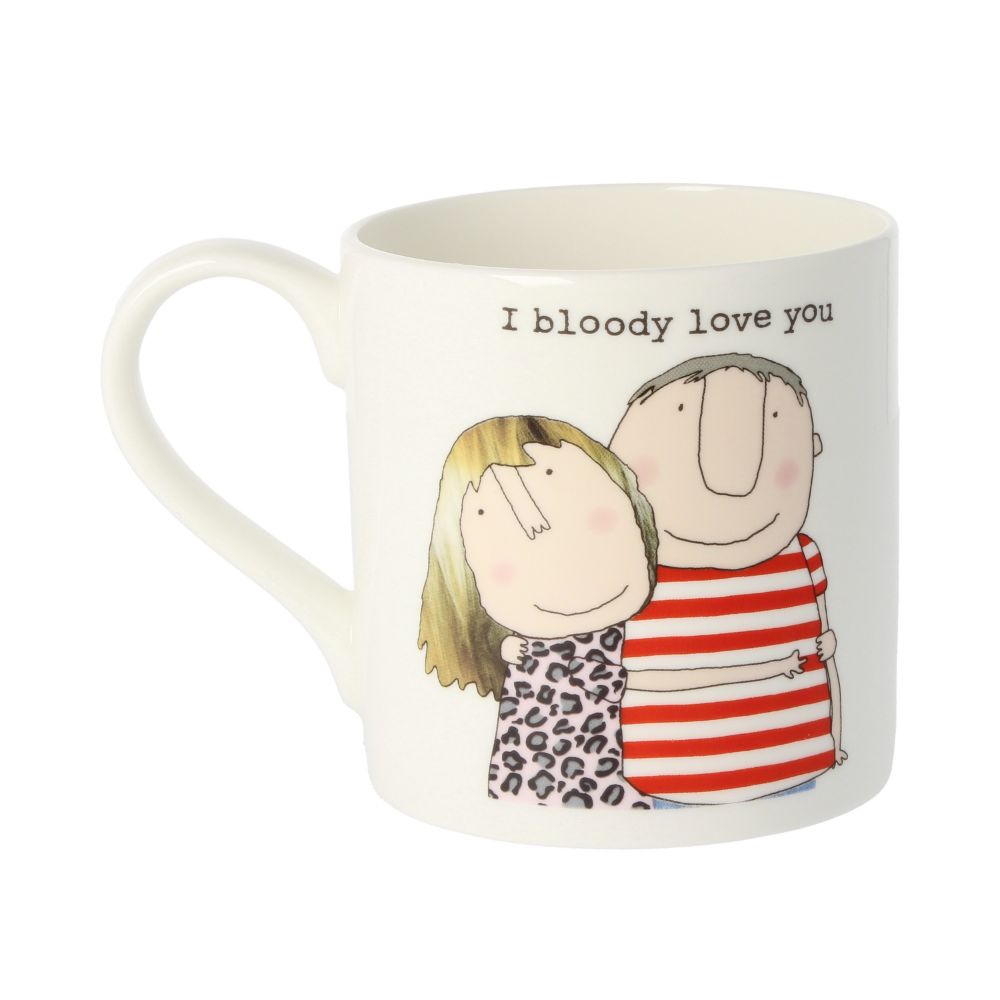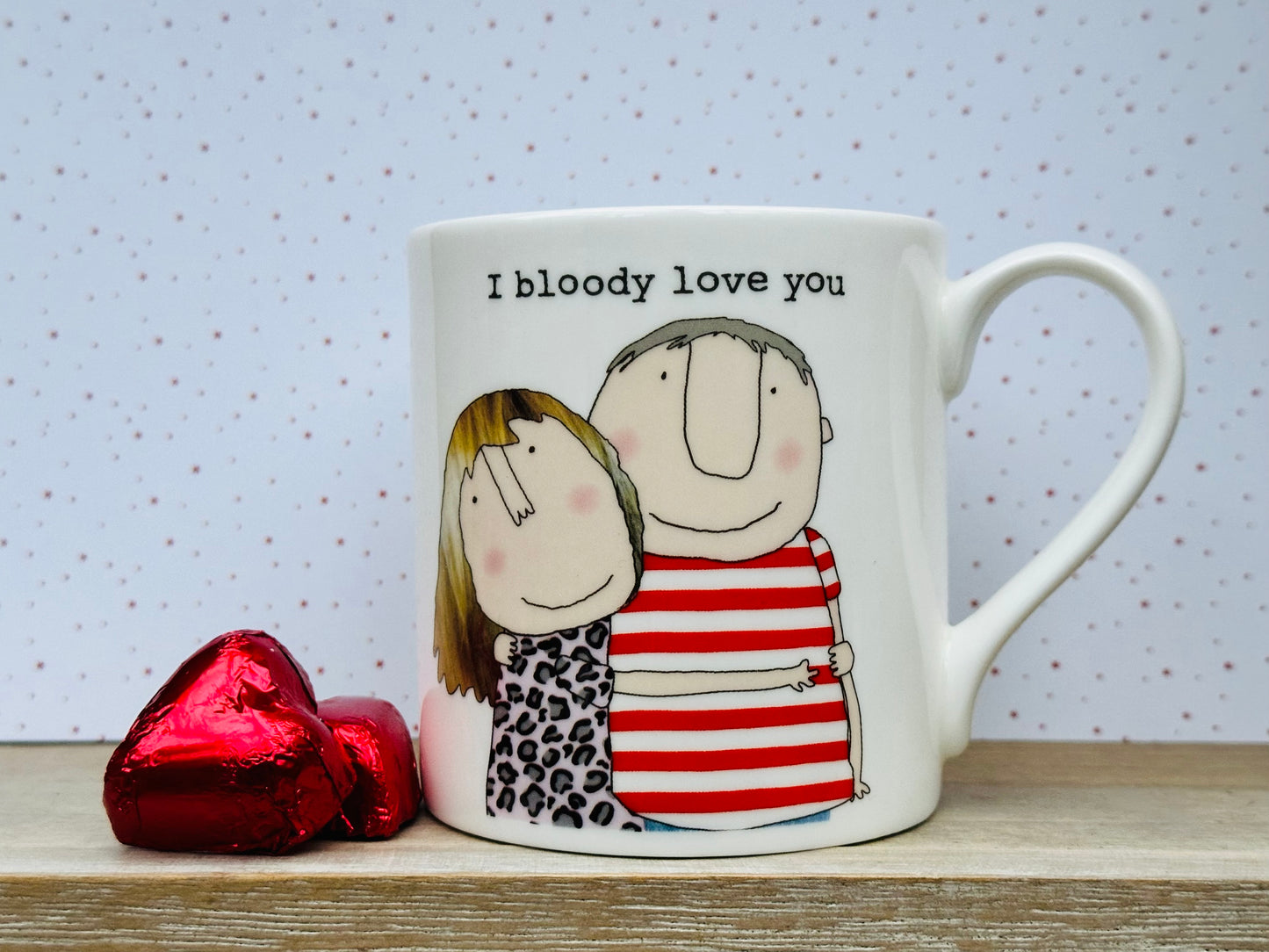 Details: An amusingly honest designer mug from Rosie Made A Thing's award-winning, quirky and honest Gin & Frolics humour range of designs. The mug is made from bone china in the UK and comes in a gift box. Handwash advisable Caption on the front and rear: "I bloody love you"