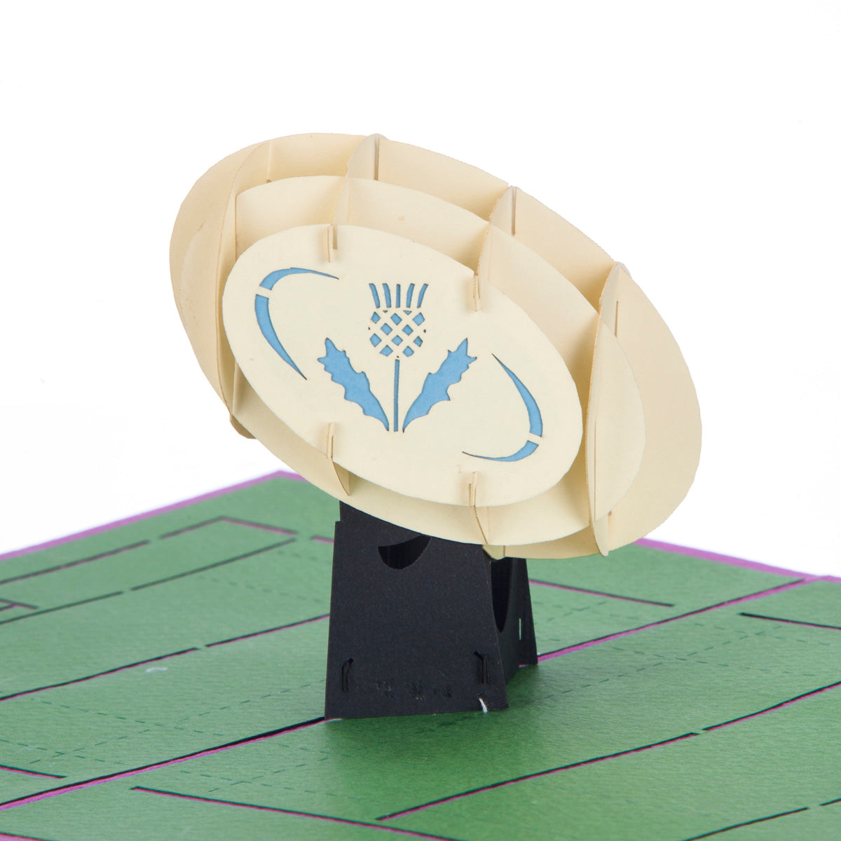 Details: It truly is what's inside that counts, each one of these Cardology 3D pop up cards hides a surprise intricate die-cut pop out inside. The Scotland Rugby card features a delicate laser-cut Ruck Maul Score Repeat caption design on the front of the card and displays a hand-crafted design featuring a rugby ball with the Scottish thistle on a rugby field on the inside once opened.